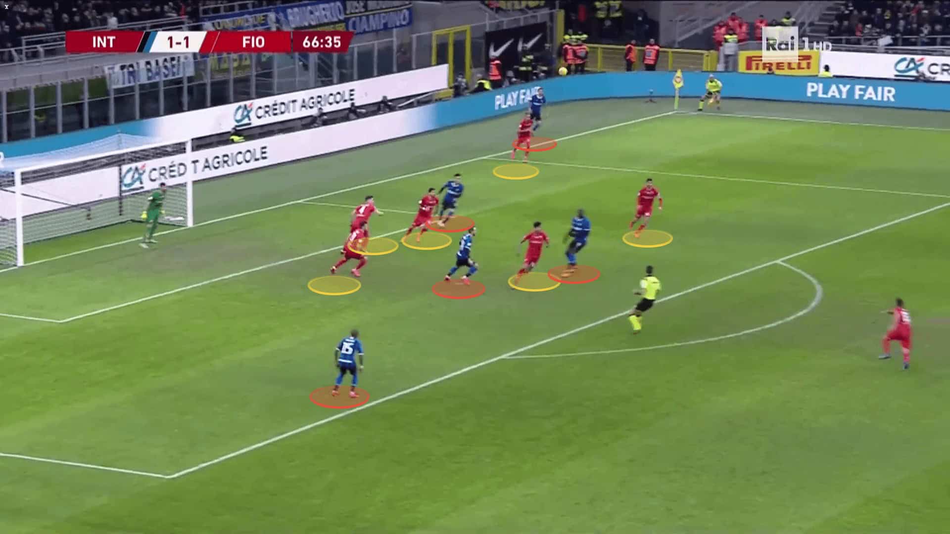 By losing the ball the players are often forced into individual mistakes and committing fouls in dangerous areas. The team fail in avoiding unmeasured challenges which results in giving away a lot of chances in front of the goal. By failing to keep the possession they are also more prone to being caught on a counter, which could be exploited very smartly by Inter. Fiorentina’s three-man defence combined with Inter’s players’ movement could turn out problematic.