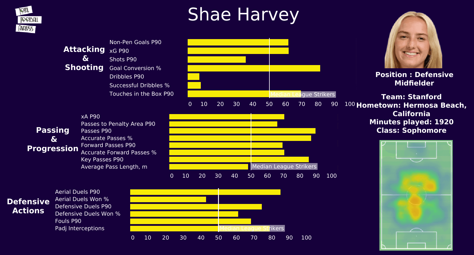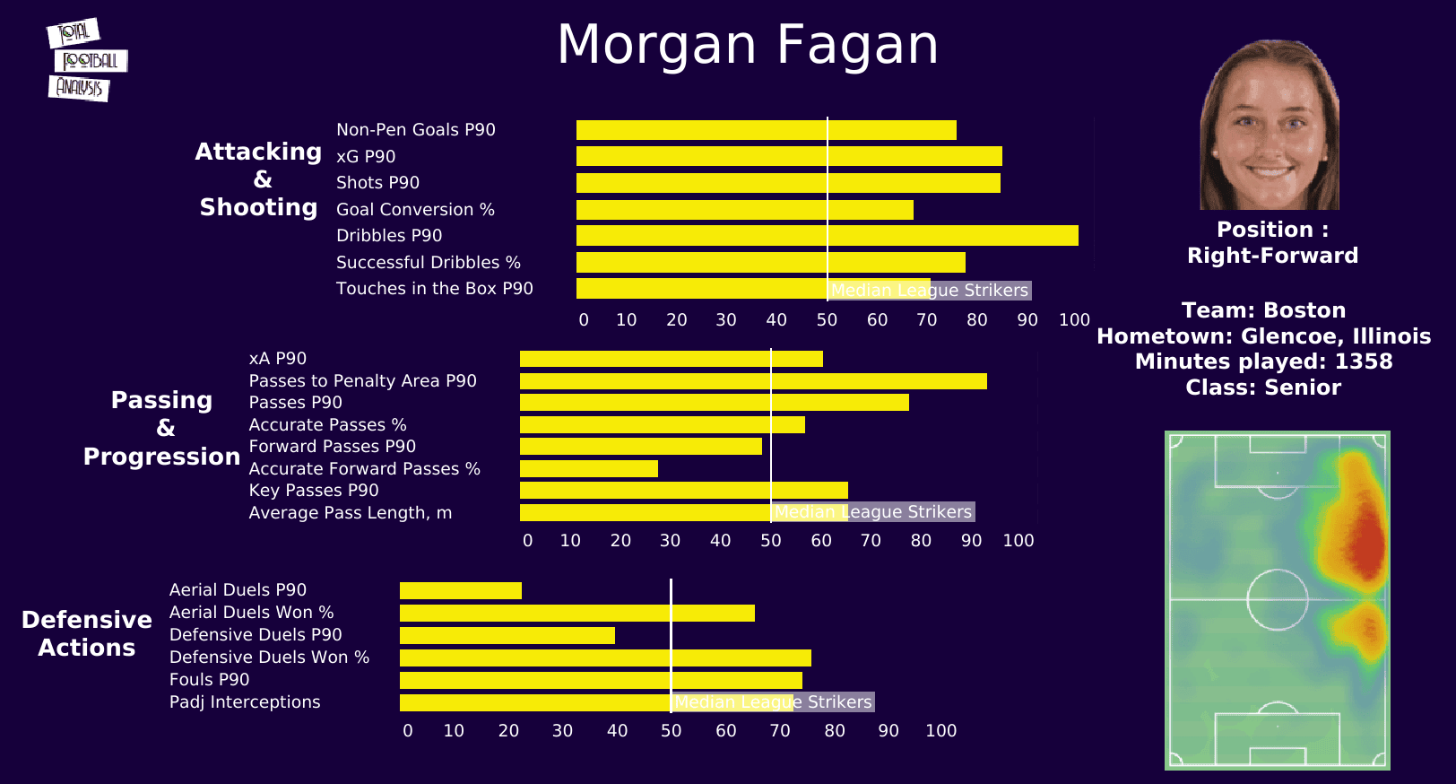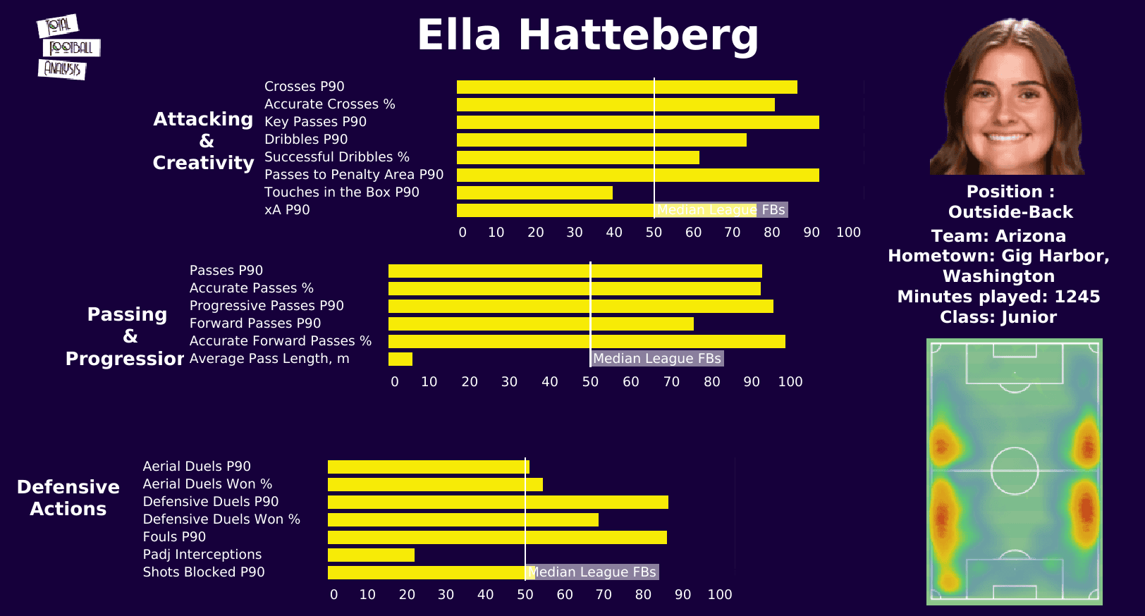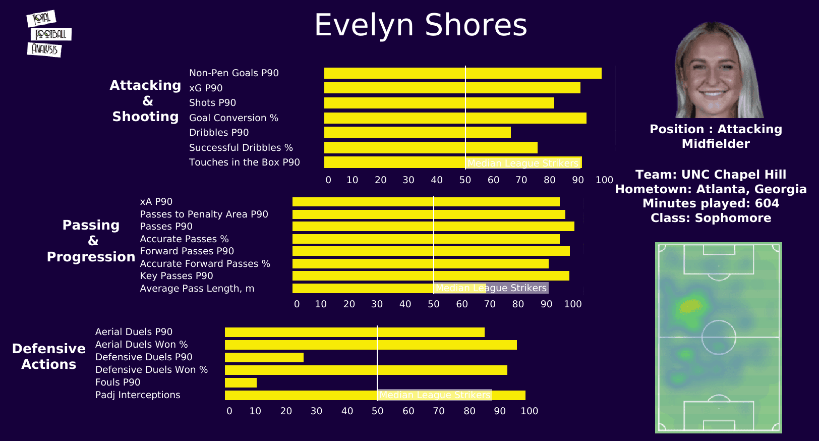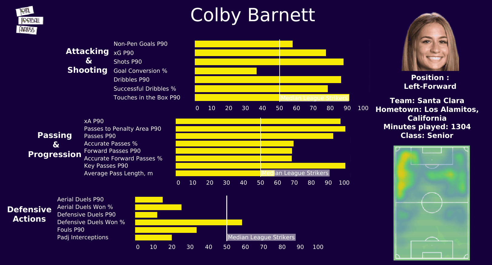Her key pass is p90 and passes to the penalty area p90 are among the best in the nation.
