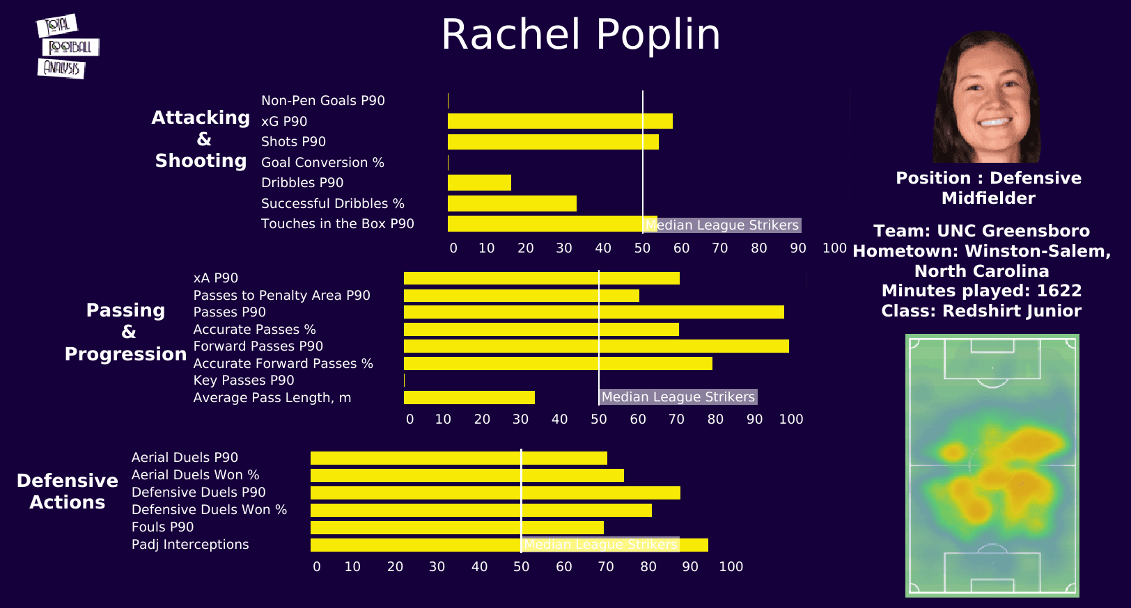 Defensive Midfielder – Rachel Poplin, Redshirt Junior, UNC Greensboro