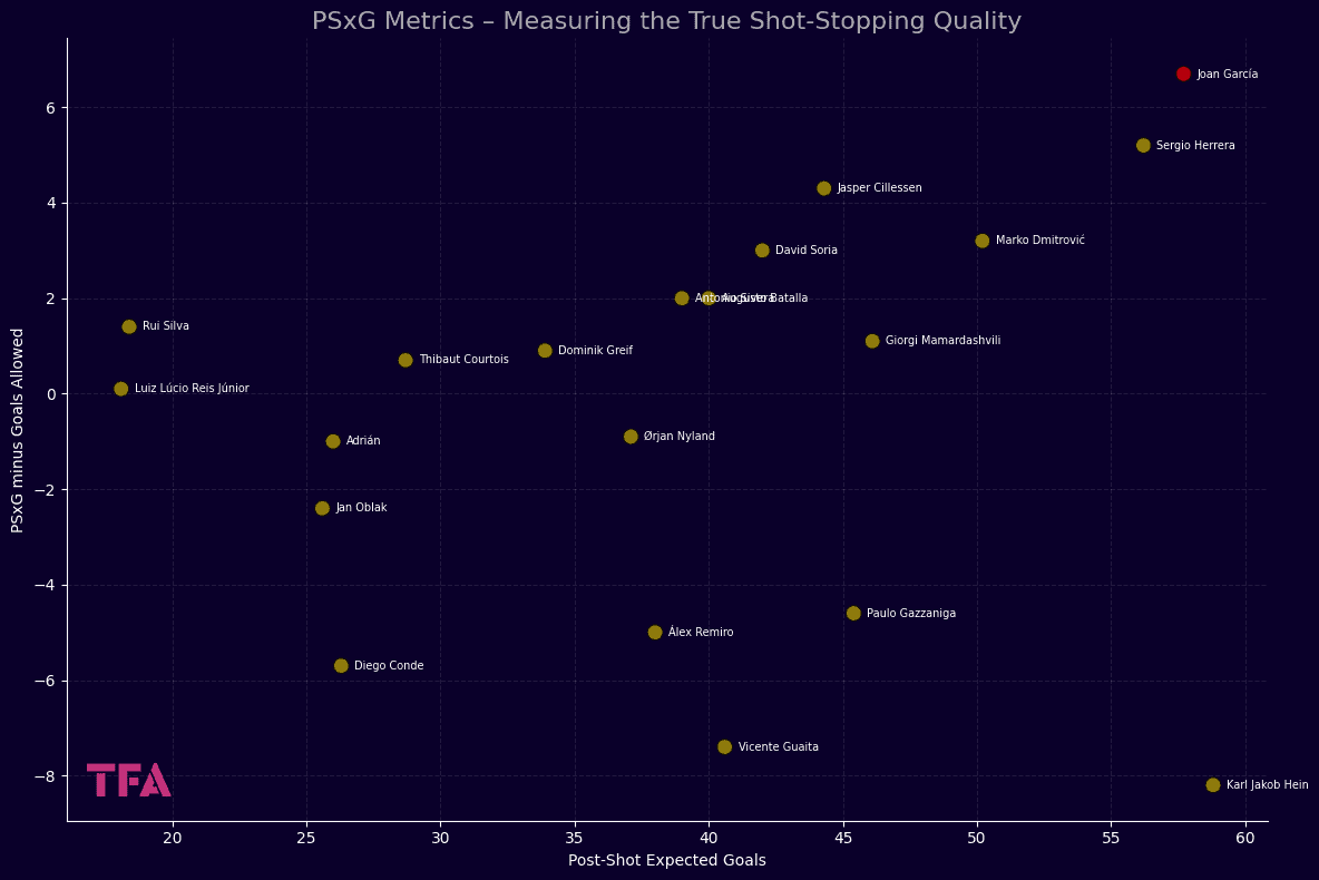 La Liga 2024/2025 PSxG Stats