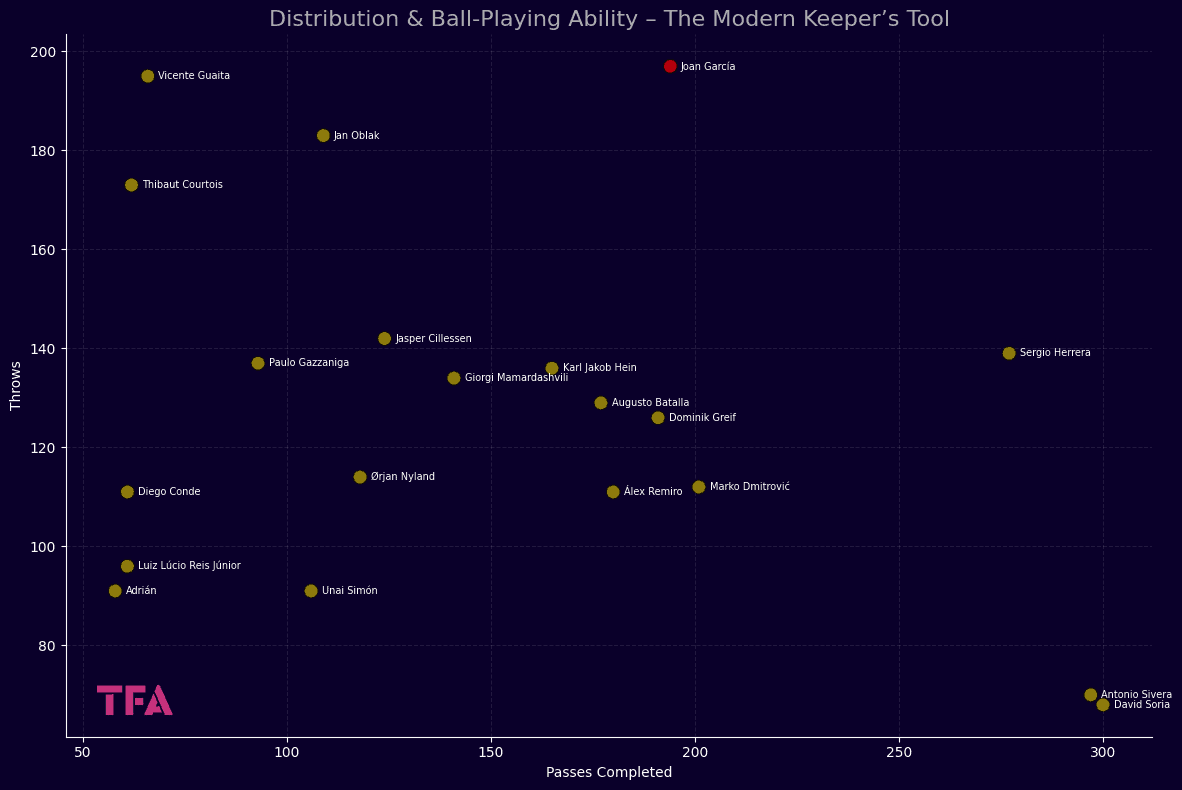 Completed Passes & Throws – La Liga Goalkeepers 2024/2025