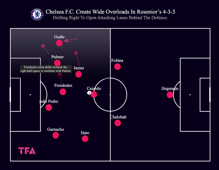 Chelsea Create Wide Overloads, With Enzo Drifting Right To Combine With Palmer & Open Attacking Lanes Behind The Defence