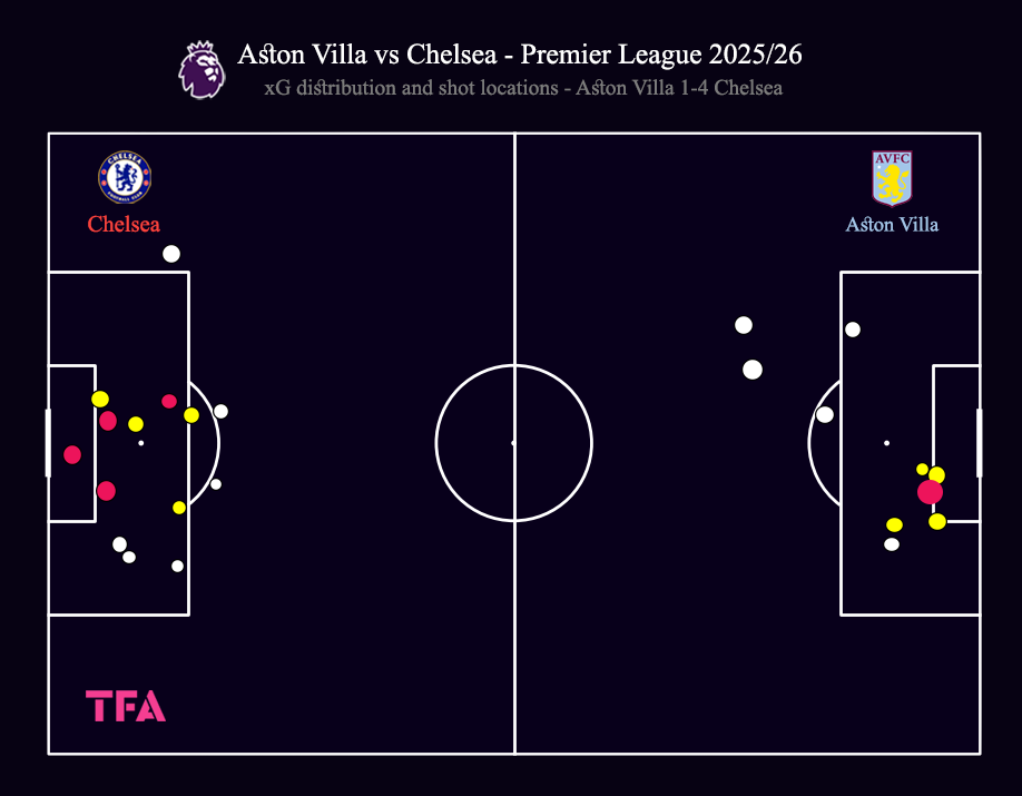 Aston Villa Vs Chelsea Shot Locations & xG Distribution 2025/2026
