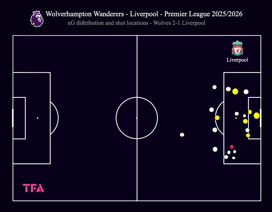 Liverpool Shot Locations & xG Distribution Vs Wolverhampton Wanderers