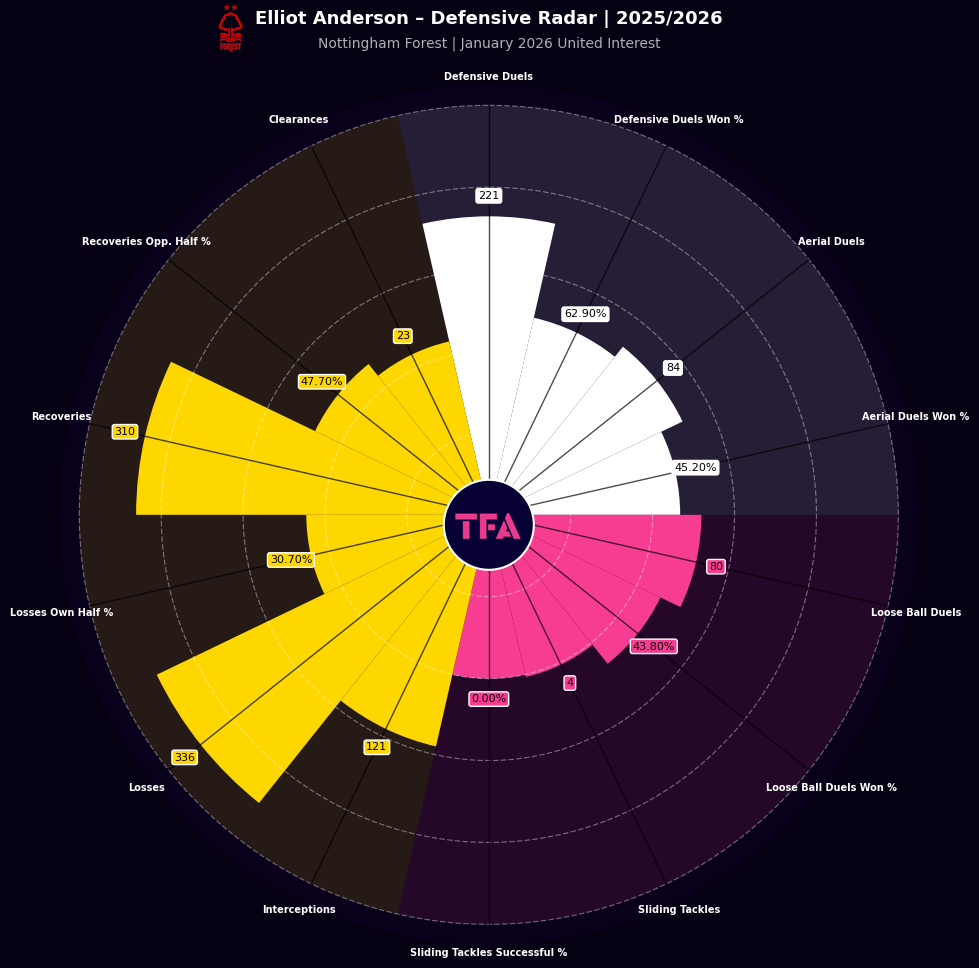 Elliot Anderson Defensive Radar With Nottingham Forest 2025/2026