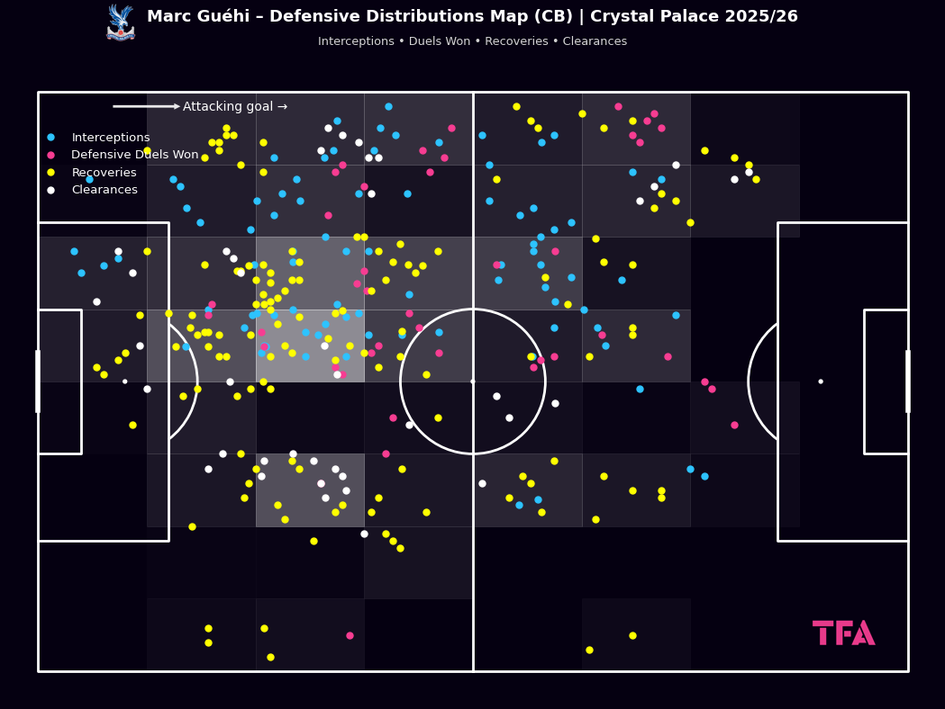 Marc Guéhi Defensive Distributions Map With Crystal Palace 2025/2026
