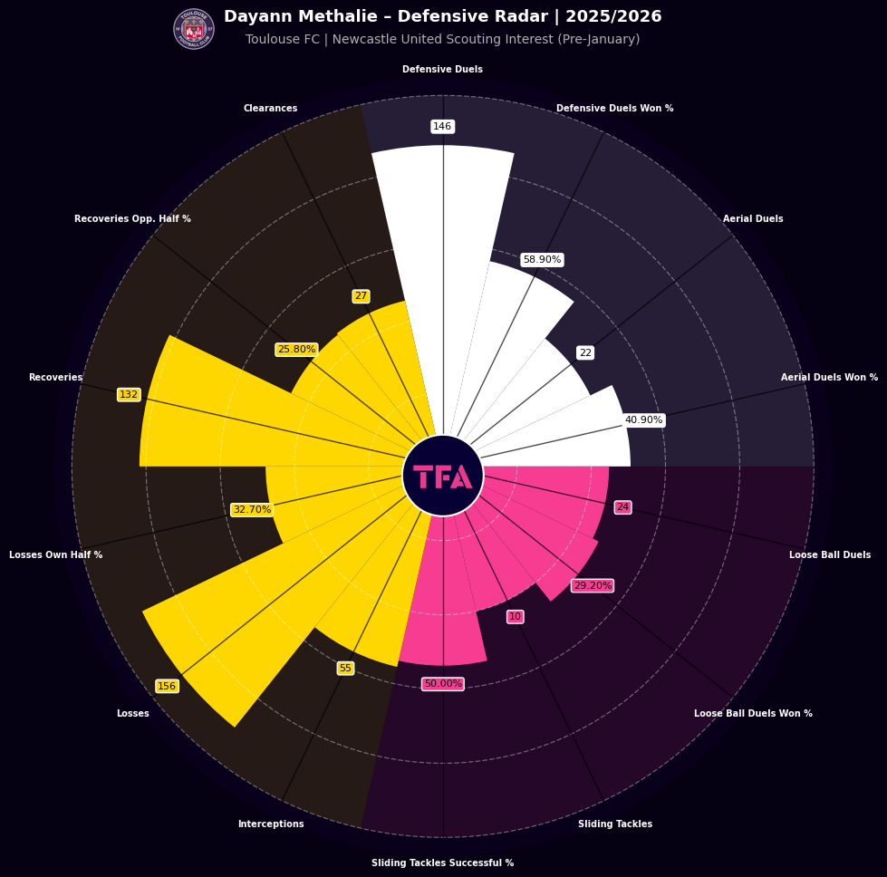 Dayann Methalie Performance Radar With Toulouse 2025/2026