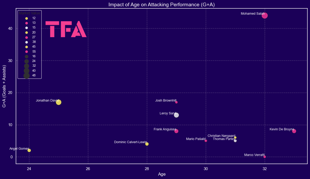Impact Of Age On Attacking Performance (Goals + Assists)