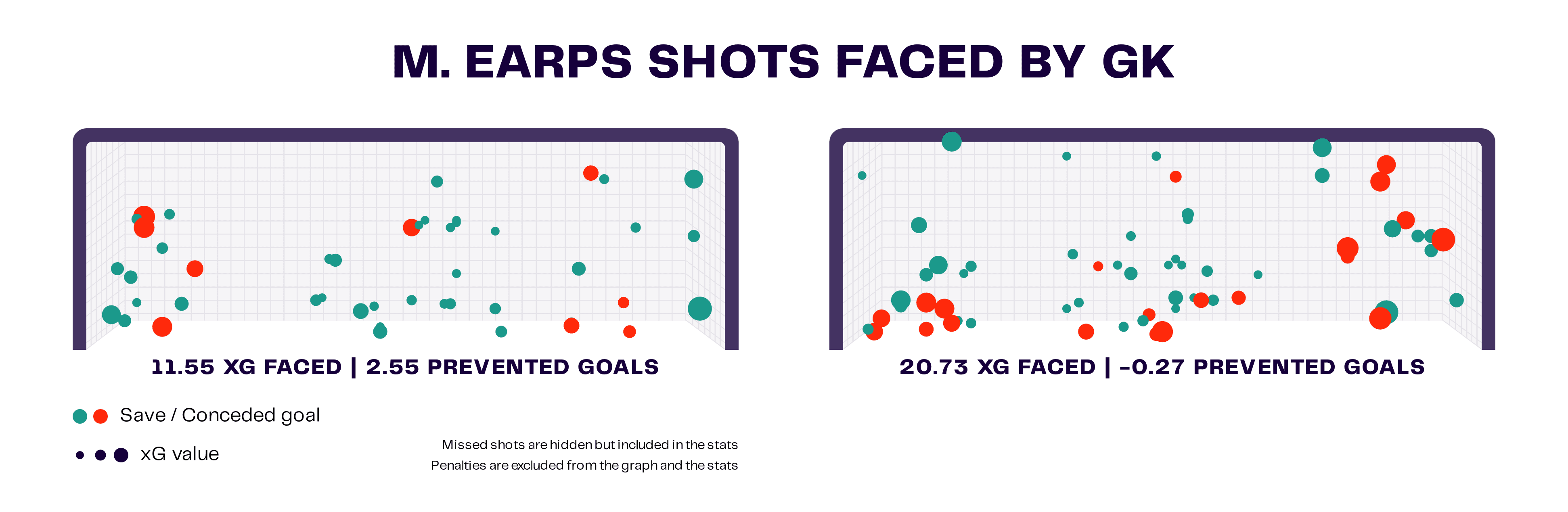 However, if we look into Arsenal’s goal-scoring abilities this season, the Continental Cup champions have scored 35 goals from an xG of 38.16 so we can confirm that they are underperforming in this metric. In contrast, as we saw earlier in this data analysis, league leaders Manchester United have scored 42 goals from an xG of 38.76.