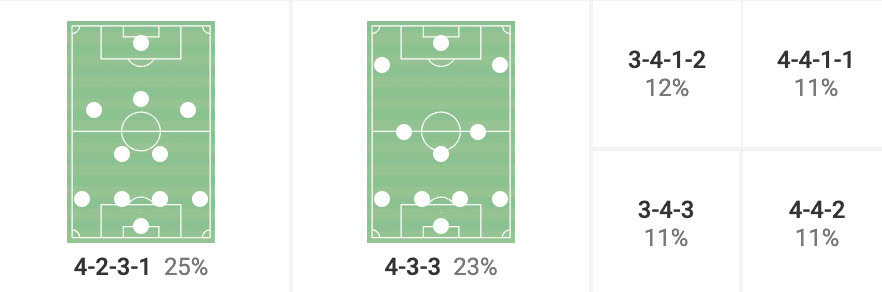 As we can see from the graphic above, Chelsea’s tactics have been very interchangeable throughout the season. They have mostly utilised a 4-2-3-1 and a 4-3-3 formation while on occasions they will switch to a three-at-the-back system or a 4-4-2/ 4-4-1-1.