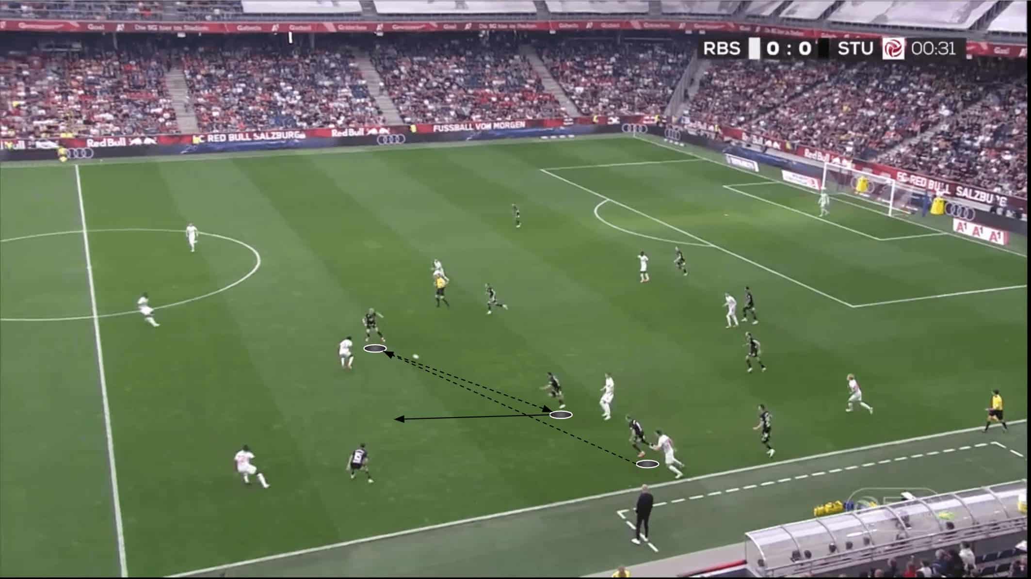 Figure 4 shows an example of Sturm Graz progressing from the full-back to the ‘10’ as they enter the final third.