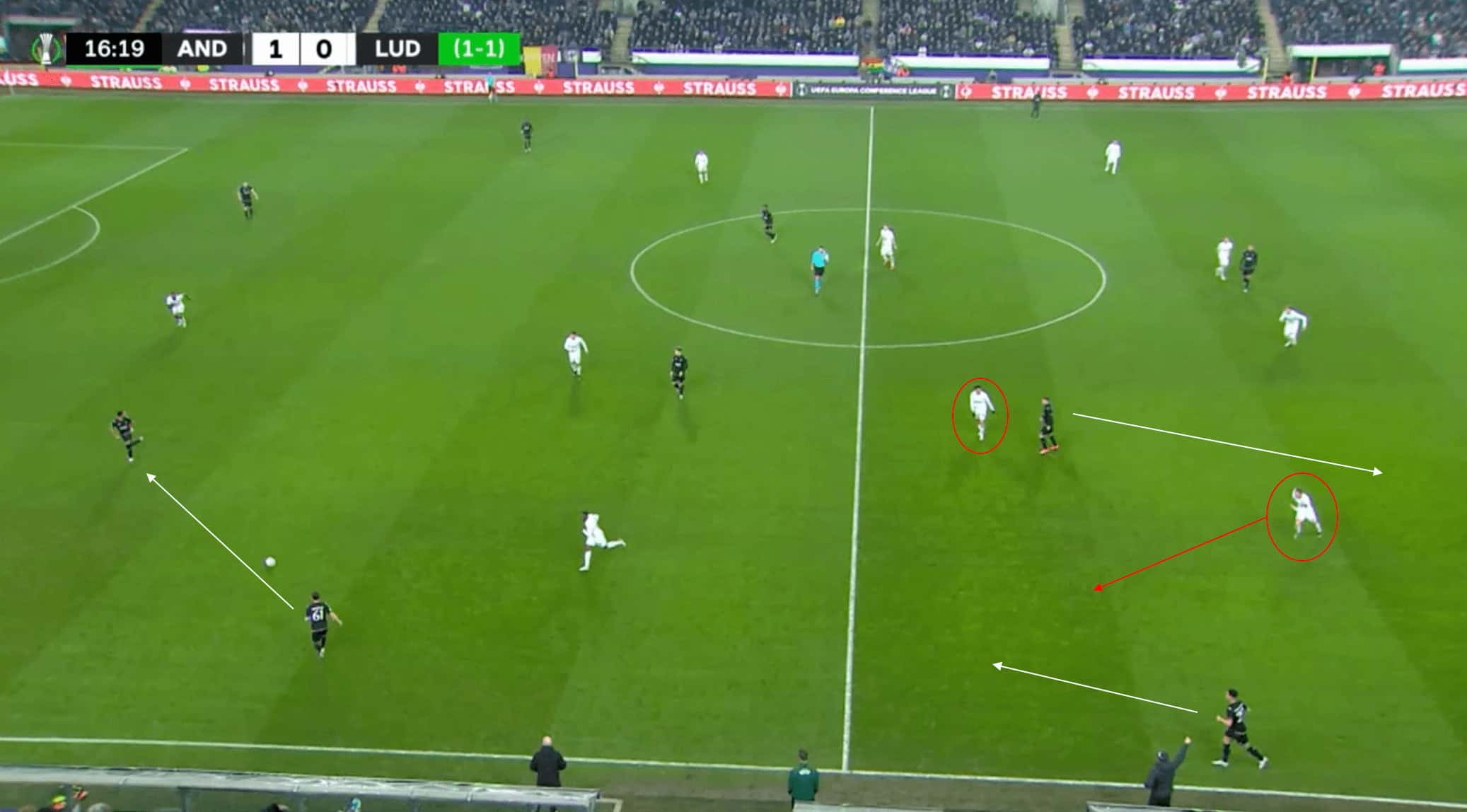 In the phase of play above from Anderlecht’s recent Europa Conference League match against Ludogorets Razgrad, Anderlecht are in possession, with the ball in possession of the fullback on the near side.