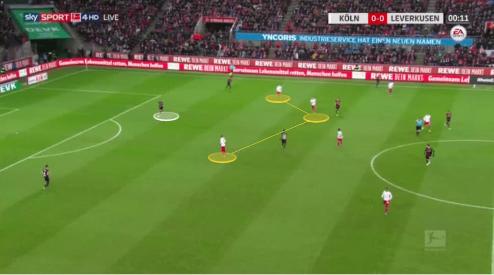 Under Beierlorzer Koln used a 4-2-3-1 formation more frequently as the season progressed, and Gisdol has continued to use this.