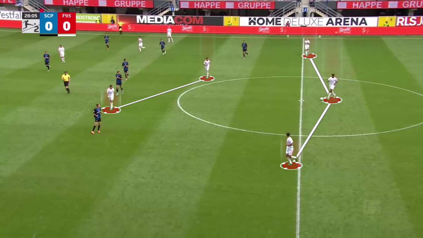 Examining the three midfielders now, we can see where the problems began for Düsseldorf.