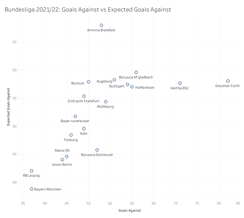 The data below shows their goals against versus their expected goals against for the league campaign. Dortmund ranked tenth for the number of goals conceded, which for a team whose aim is to challenge Bayern Munich for the title. is unacceptable.