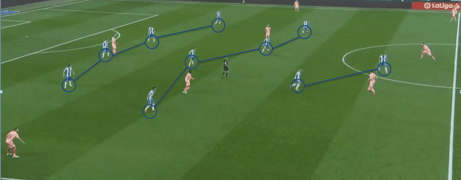 Notice how they start building from the back, which is not necessarily completely out of the blue for this Espanyol side but they were missing the key pieces of that puzzle in Hermoso in order to be successful at it, especially against a high press team like Barcelona.