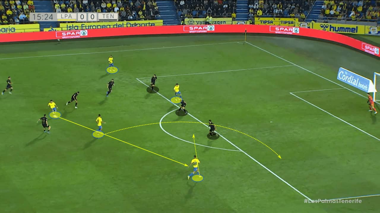 This tactical analysis will take a detailed look at García Pimienta’s Las Palmas, looking at the ins and outs of their attacking system.