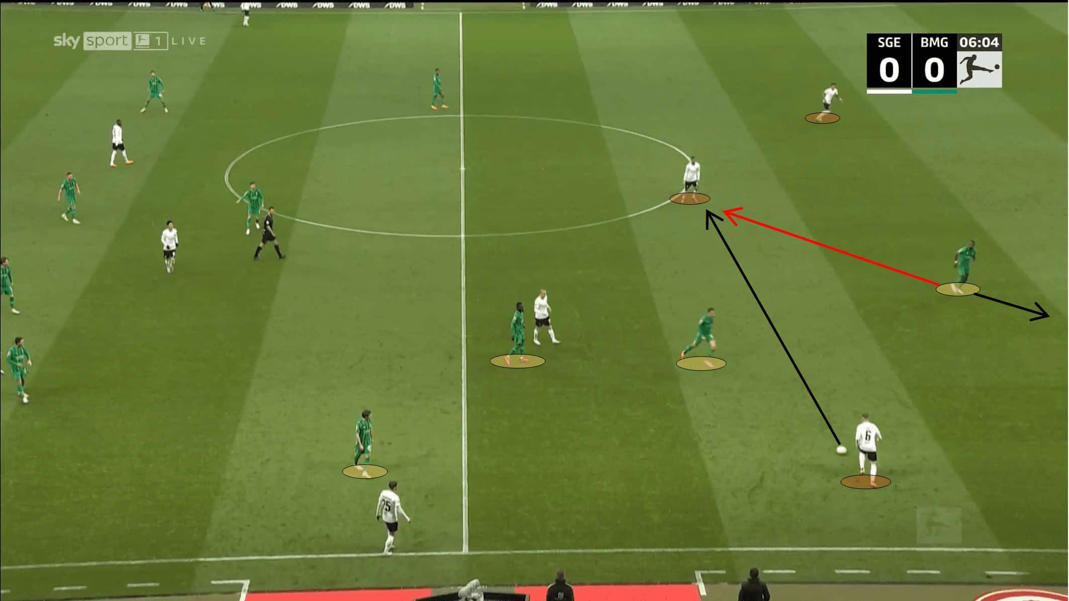 In the below image, we can see an example of how the German collective loses the ball in crucial zones of the pitch and how it generates dangerous counterattacks for the opposition. In this case, the counterattack ended in a goal suffered by M’gladbach.