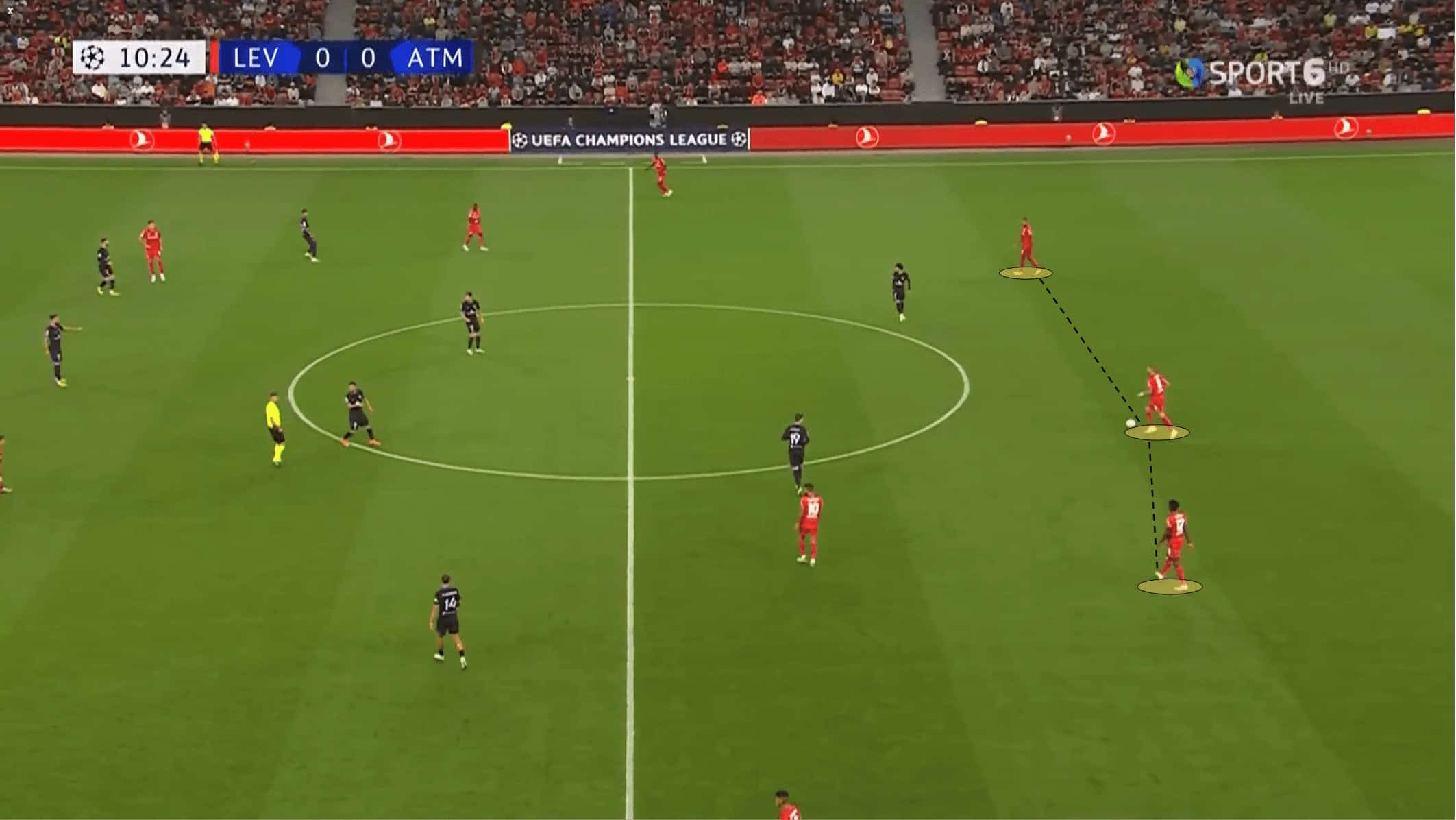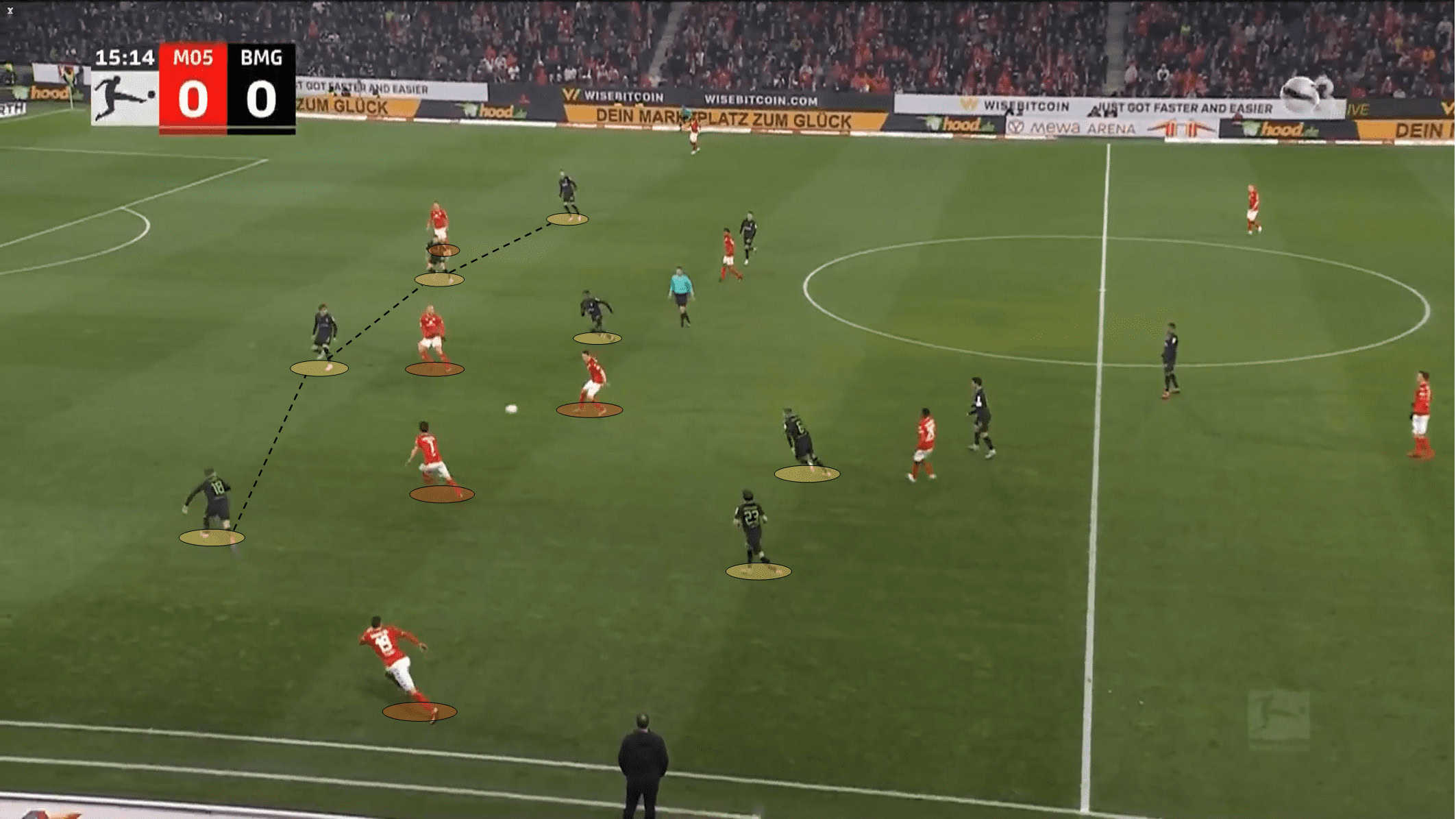 Under Gerardo Seoane it is expected to be also coordination between the players occupying more advanced zones of the pitch. Again as we referred to in some other articles, coordinated movements between players from different positions create space to play, because it misguides the opposition’s pressing plan.