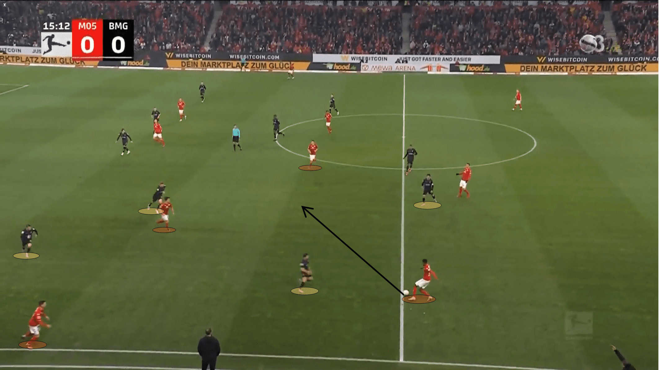 Using Wyscout, it was possible to understand that Borussia M’gladbach was above league average in losses of possession: approx. 102 losses per game against 97. Besides that, the data that supports our analysis the most is the one that shows that Mönchengladbach is also above league average in losing the ball in low zones of the pitch: approx. 22 losses per game against 16.