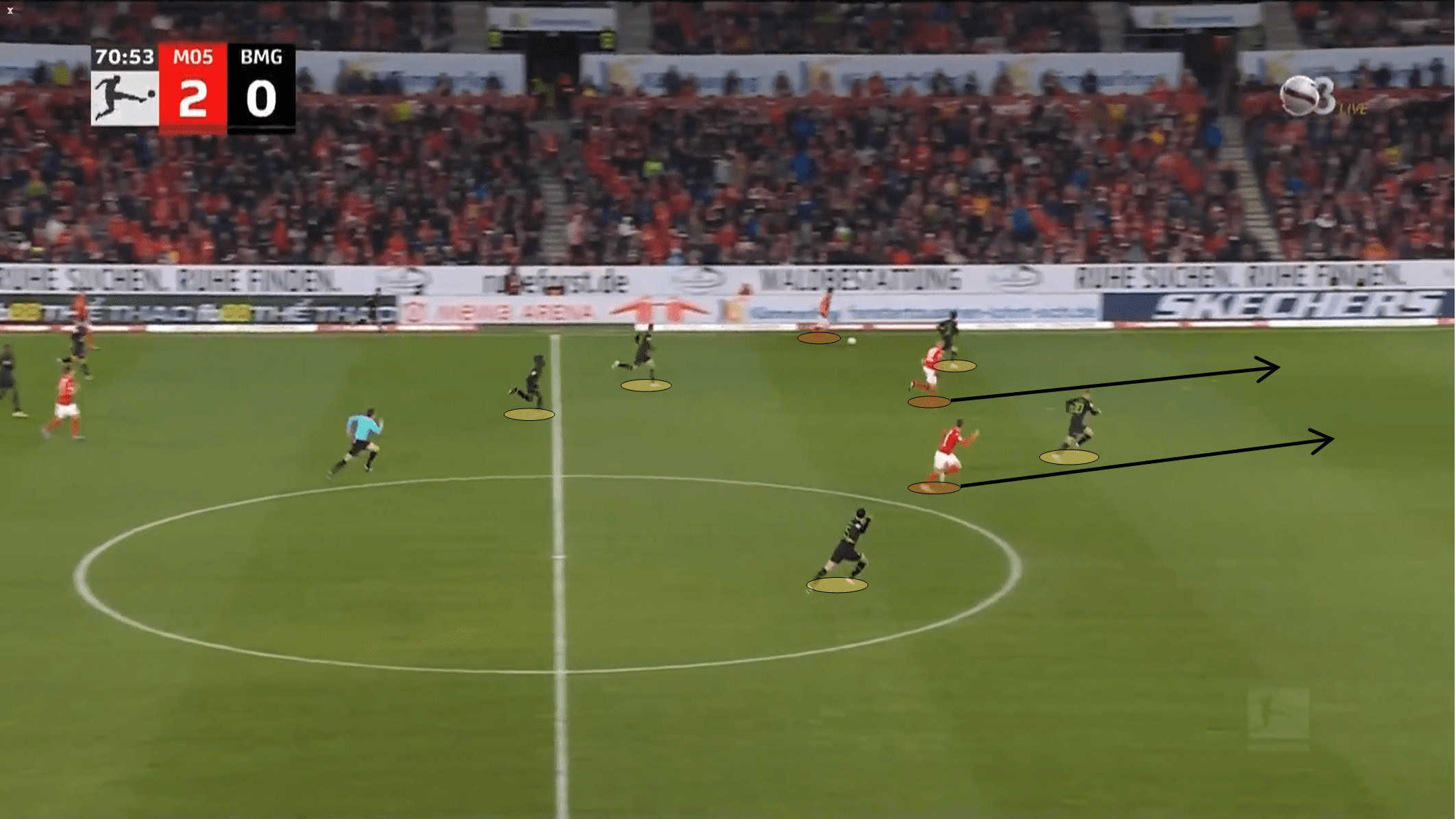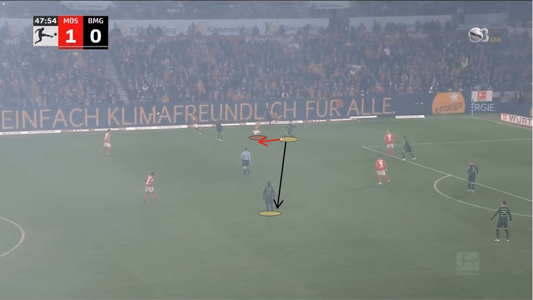 This kind of attitude could have happened due to the type of players that intervened in that process, where most of them weren’t endowed with pace and explosion. For instance, Stindl, Kramer, Weigl and even Hofmann aren’t that physically intense for a successful, intense and high-block pressing plan.