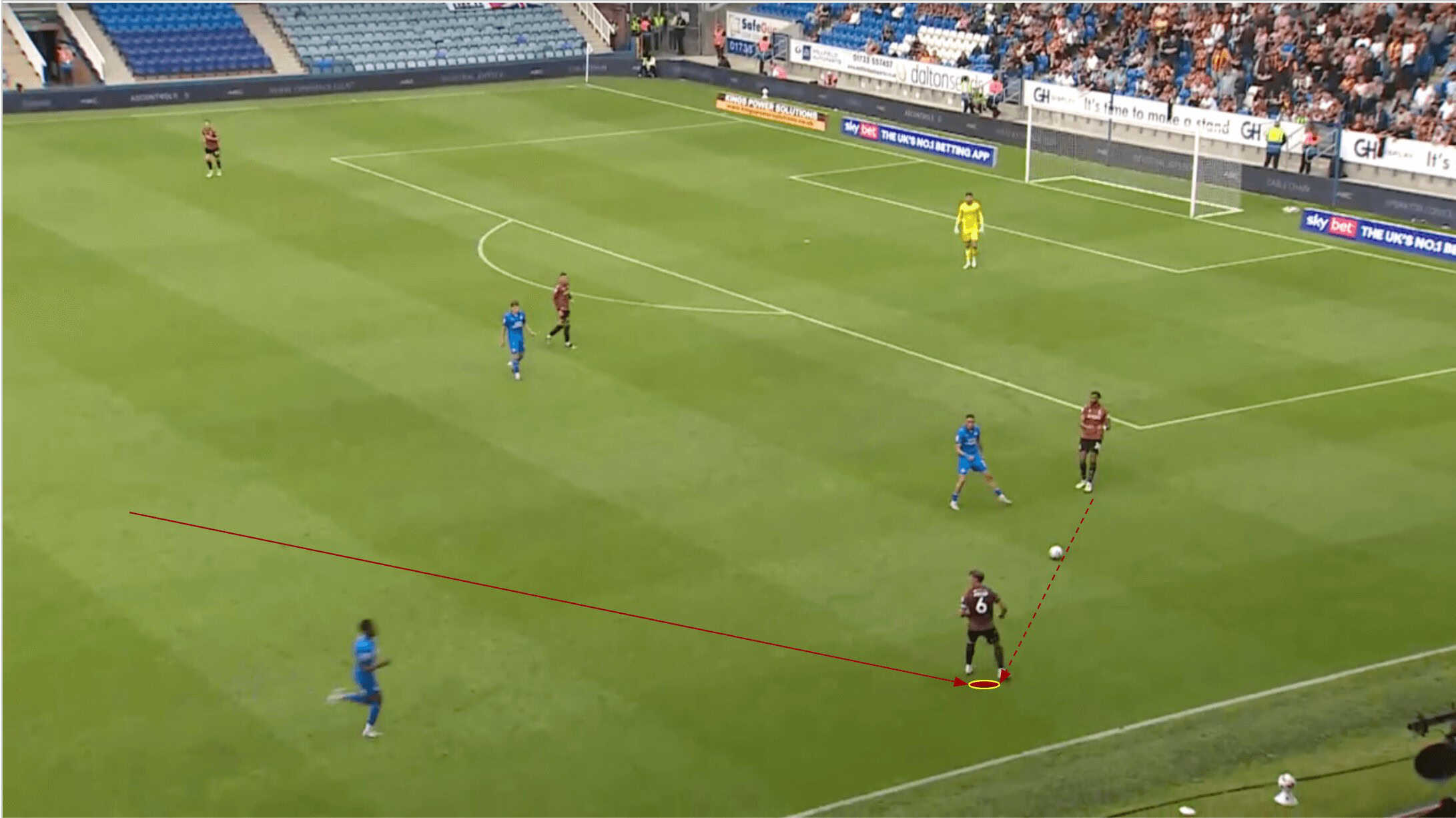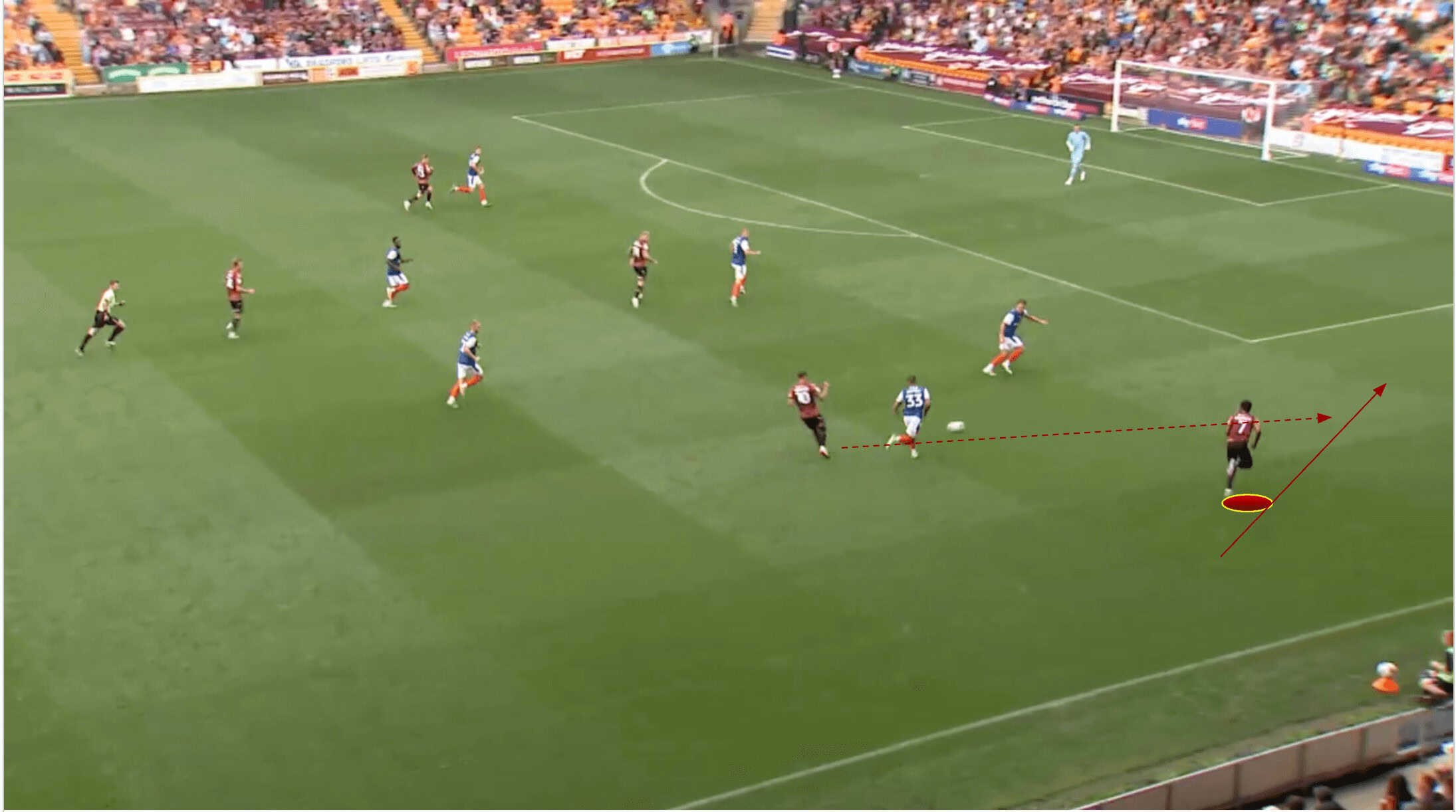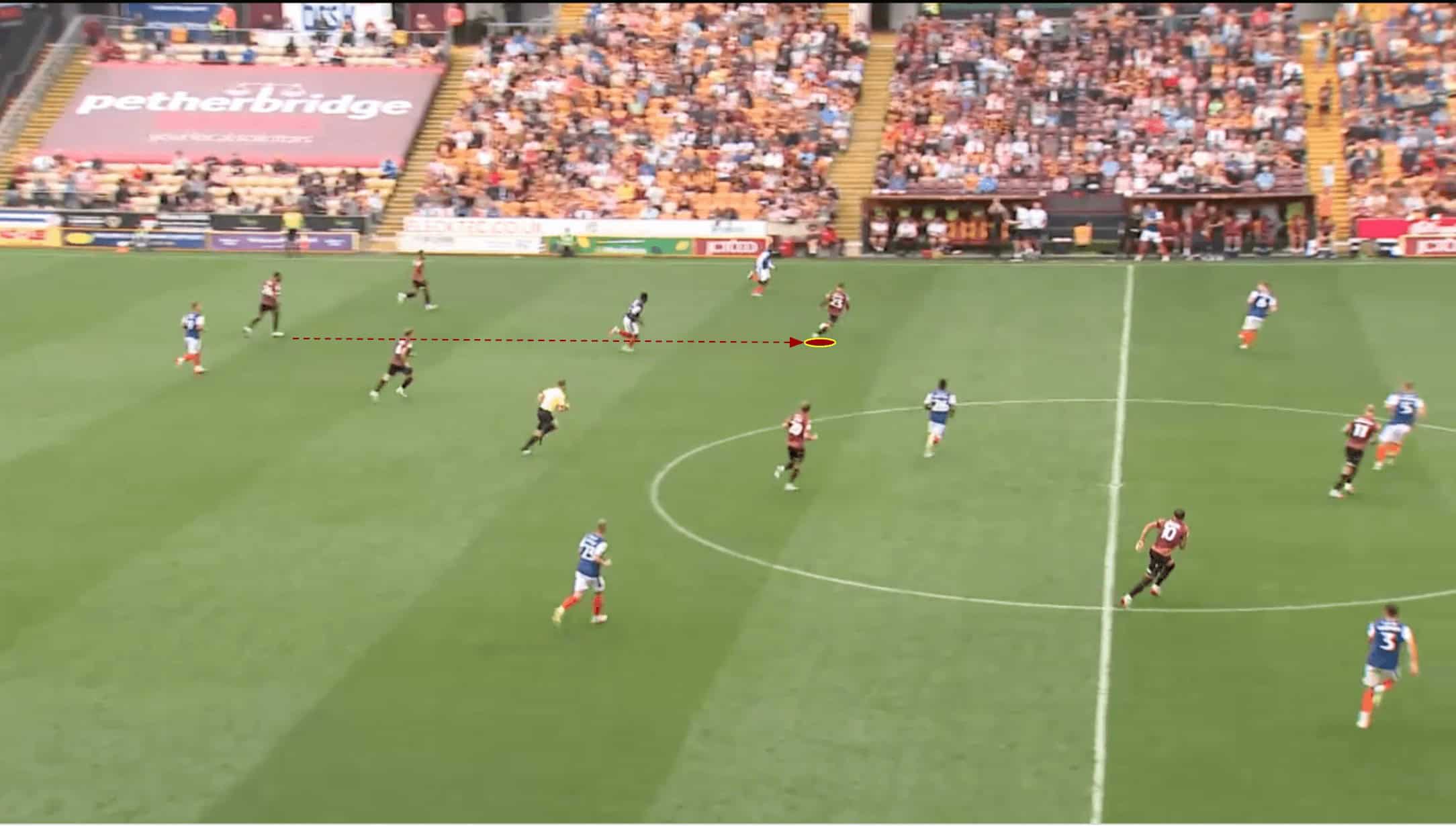 As the long ball was sent forward and Bradford regained possession, Pointon was in a perfect position to receive in the left half-space.