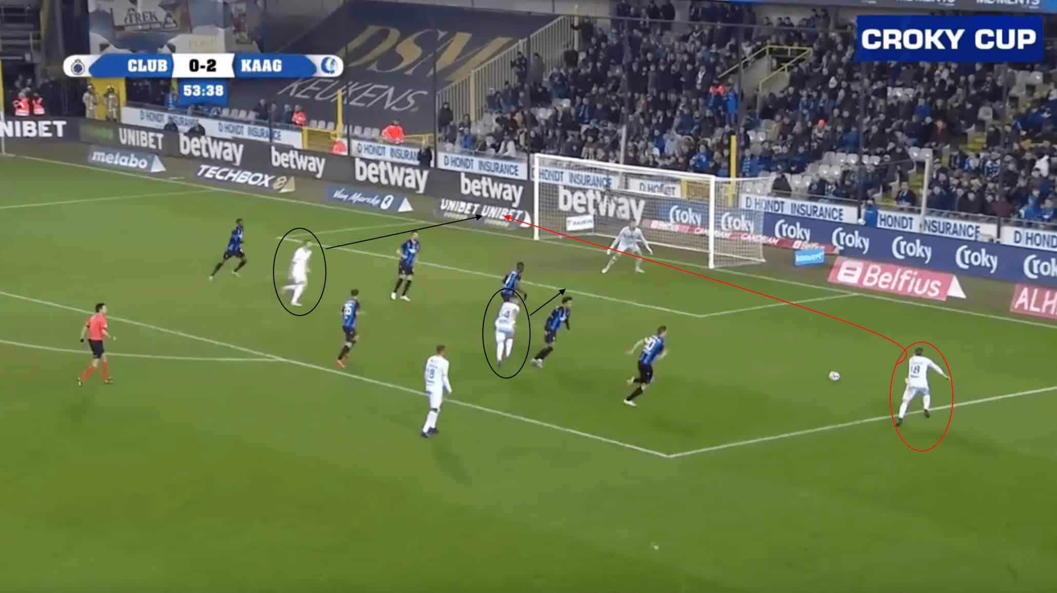 As a result, the ball is turned over and Gent are able to start breaking on a counter-attack.