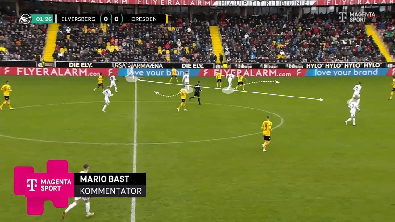 Elversberg have nearly eight players concentrated in the wide area, with the ball as a reference.