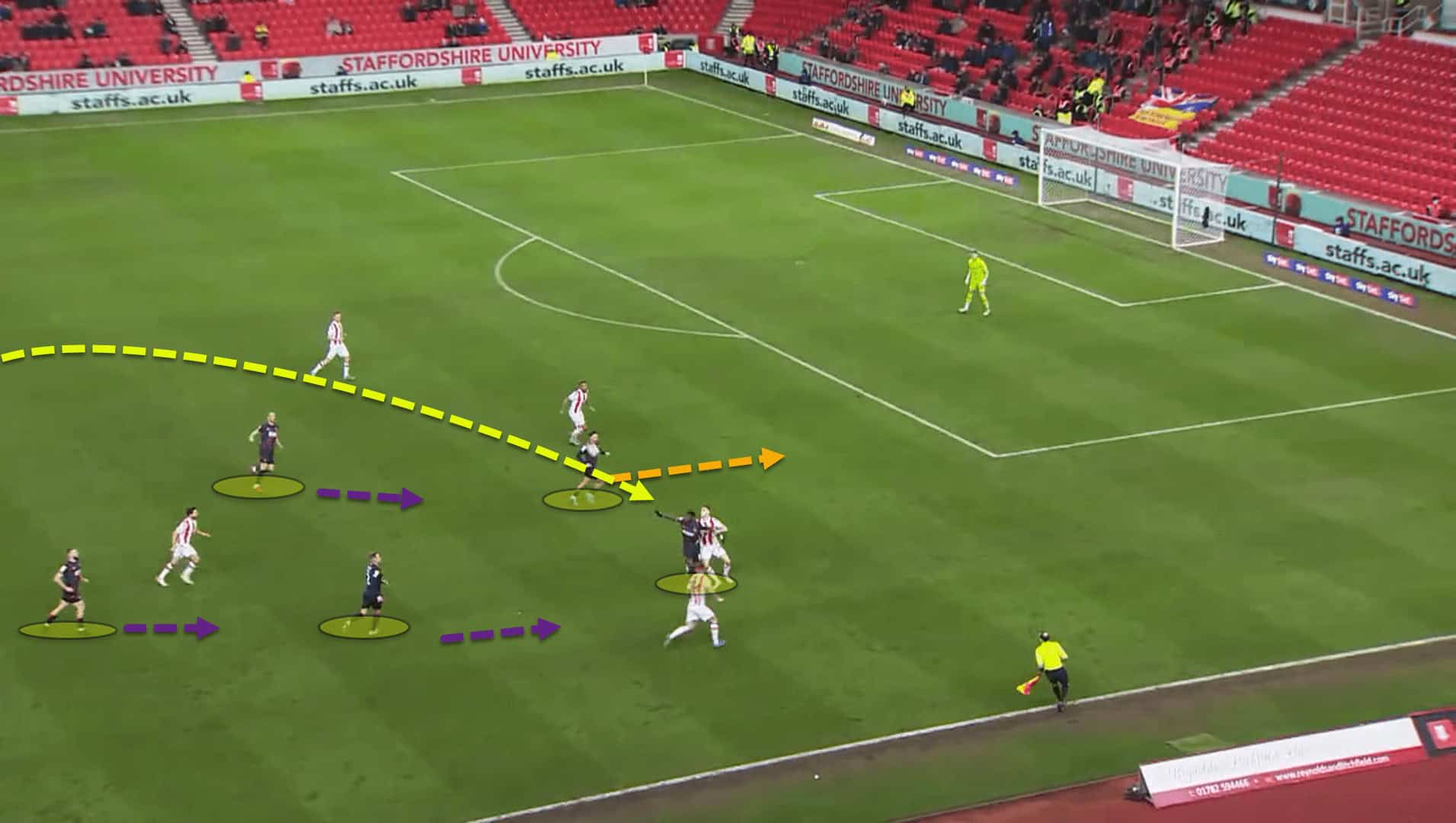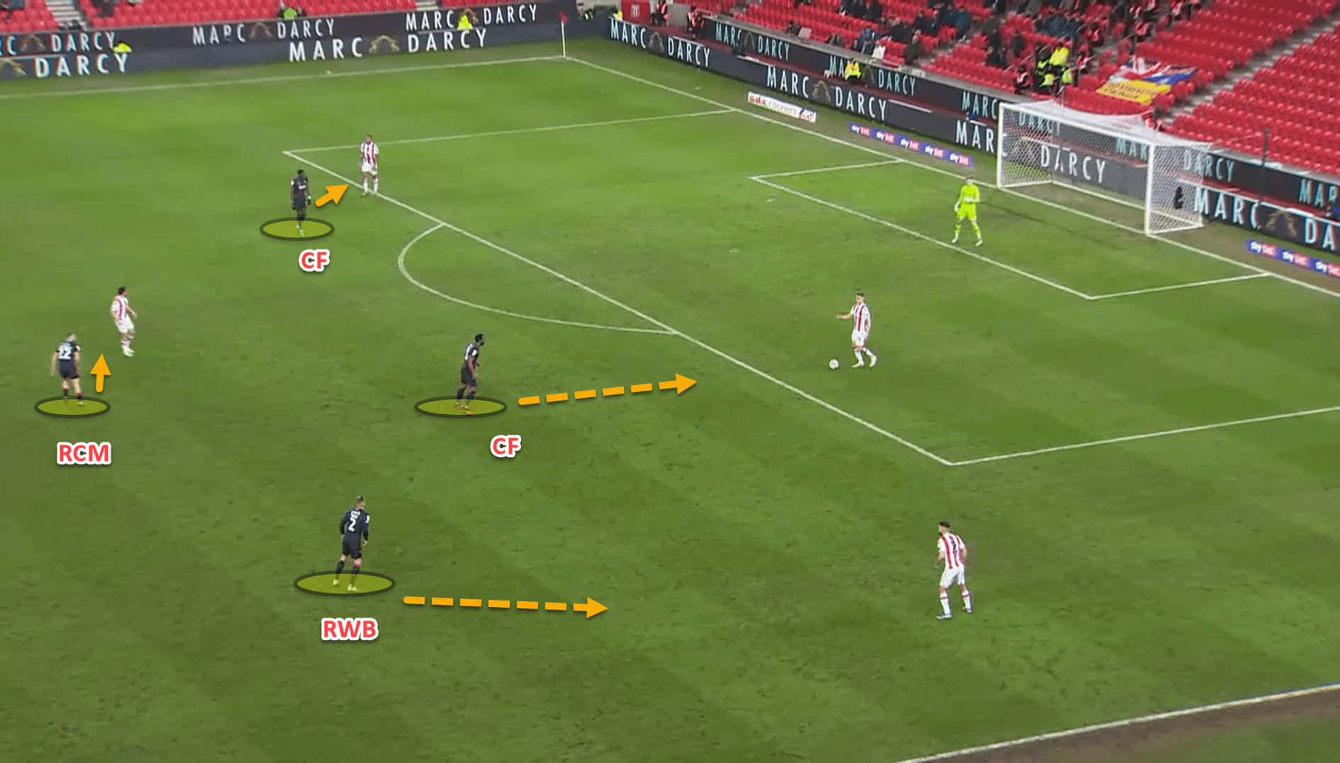 Burke, being the right centre-back, will move up the pitch and help form the overload.