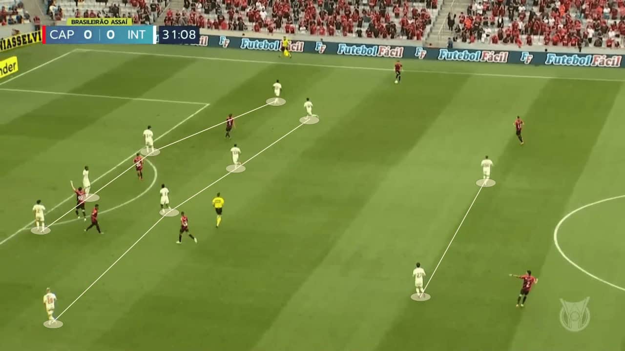 Against weaker teams, they will deploy a high press in order to dominate the game. However, this is quite rare, especially since their most effective offensive work is transitioning from deep. Against América Mineiro and Goiás, for example, they had a PPDA of 4.53 and 8.84, respectively.
