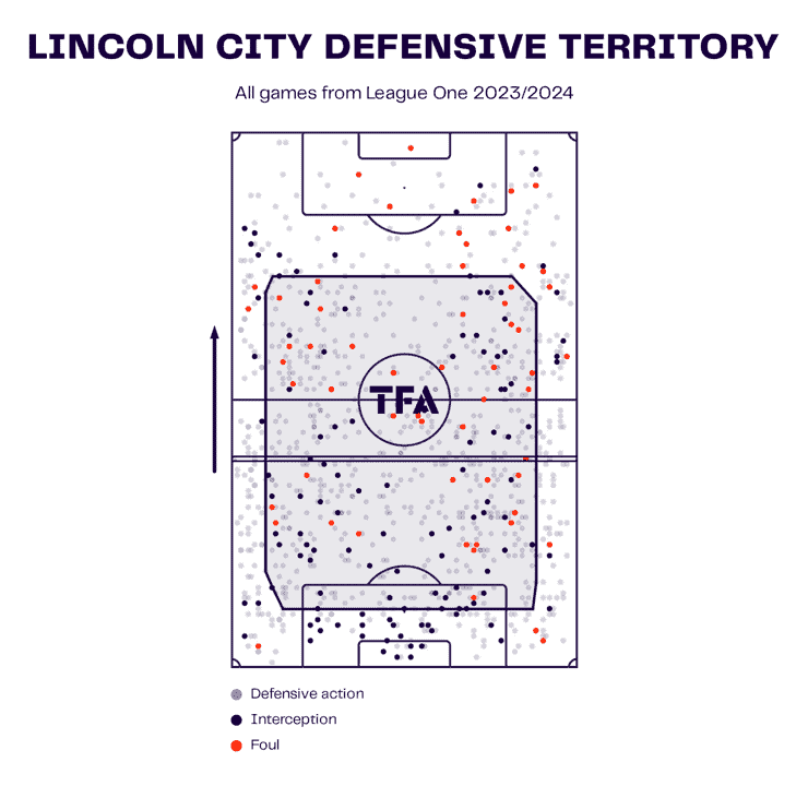 Lincoln are not a high-pressing, high-intensity team off the ball the way that, say, Stockport County are, as we covered last week.