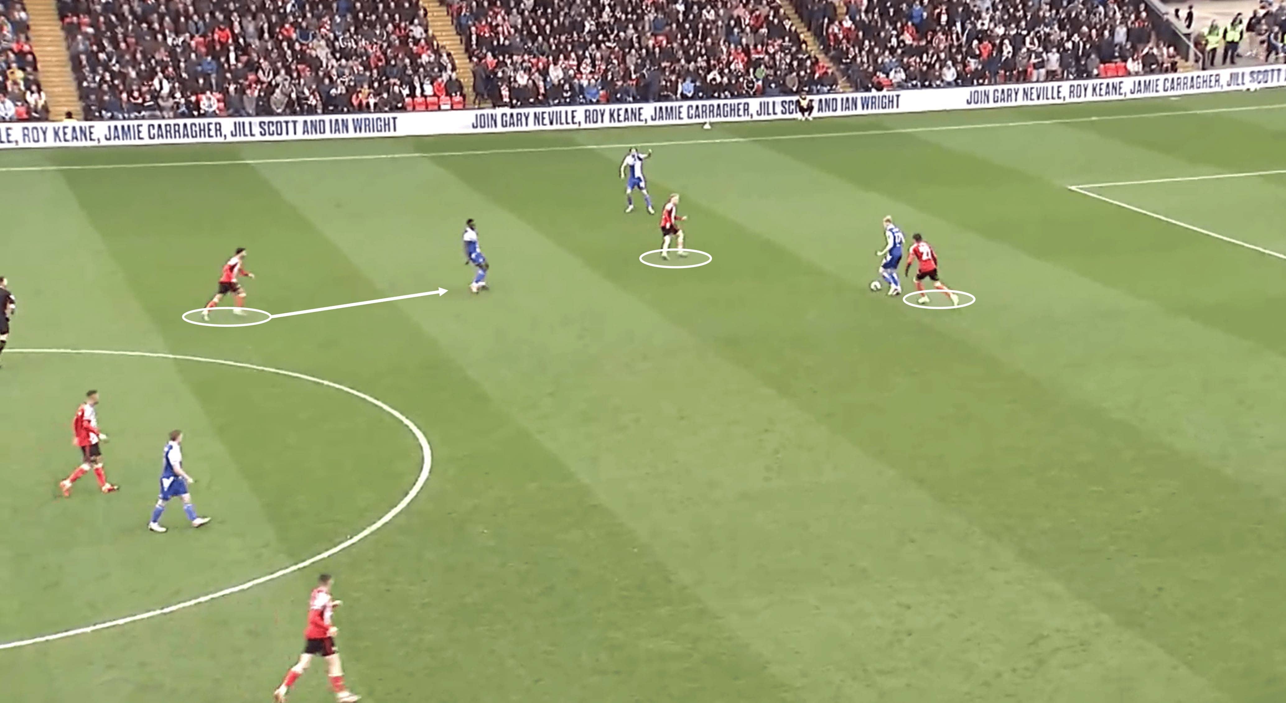 With this movement from the midfielder, there will be a slight shift in shape behind him, with his midfield and defensive teammates preparing to suffocate the midfield unit if required.