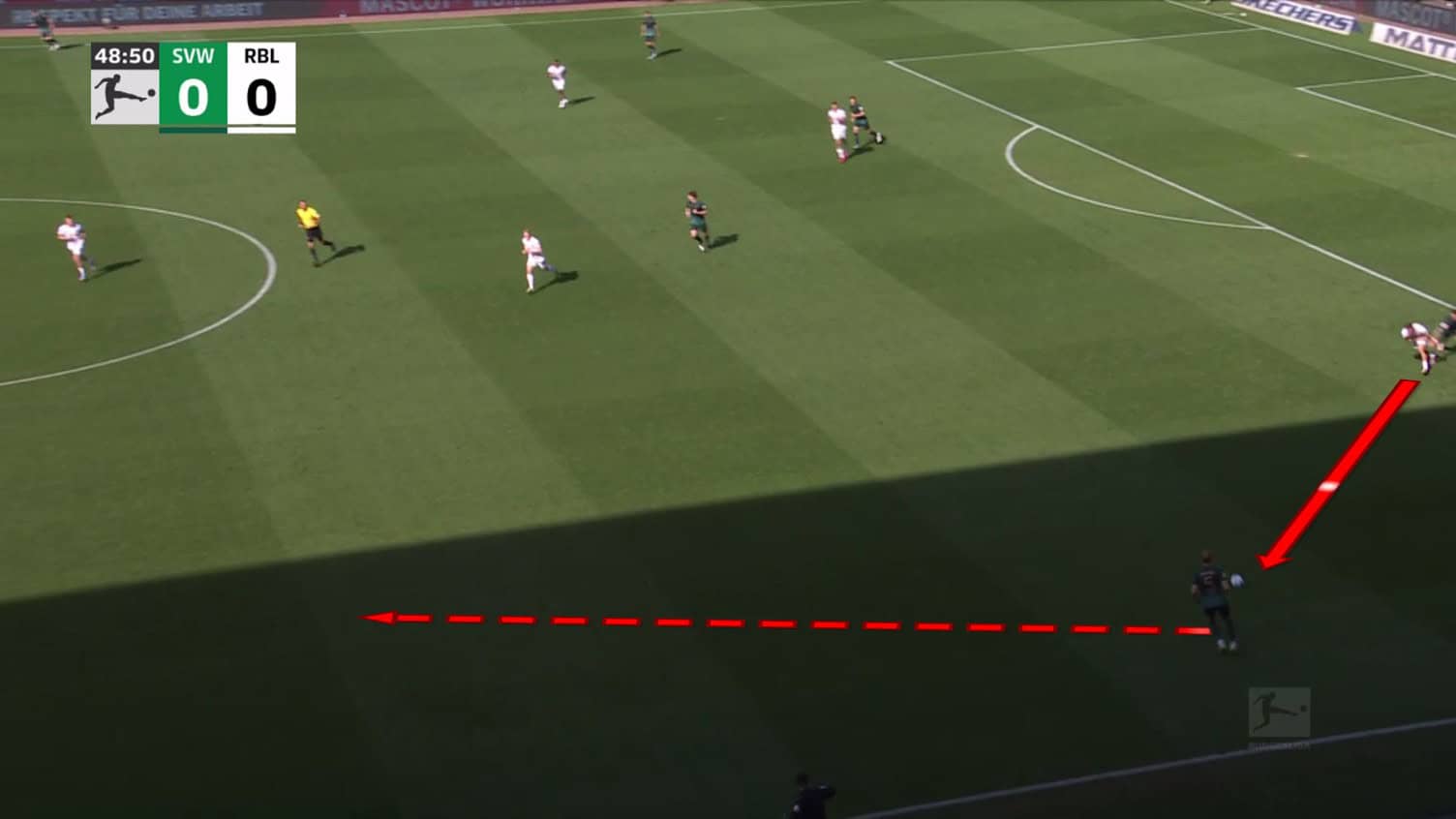 Pieper carried the ball forward into midfield, and Leipzig had to scramble backwards to regain their defensive shape.