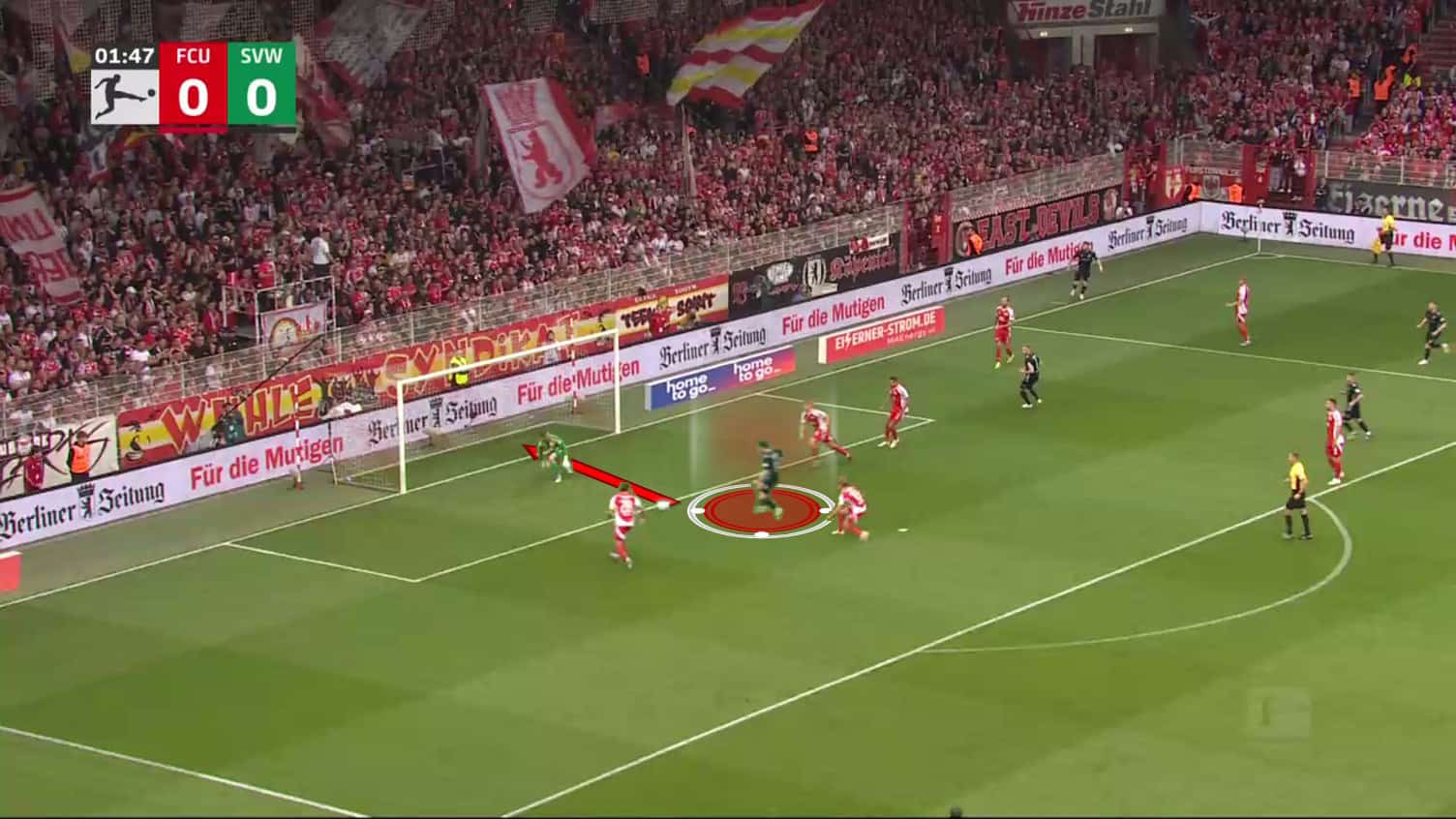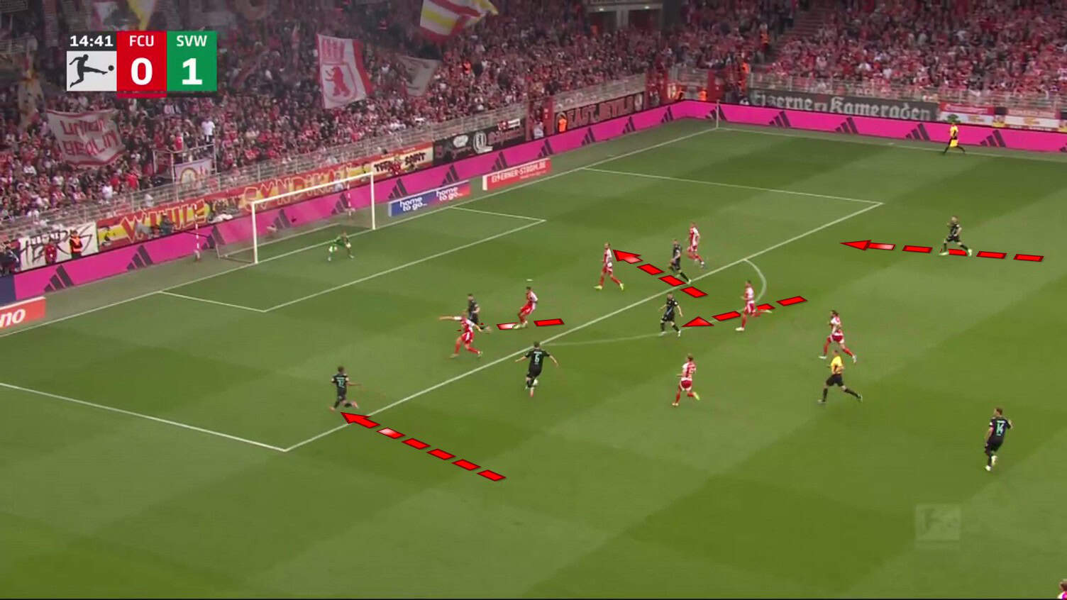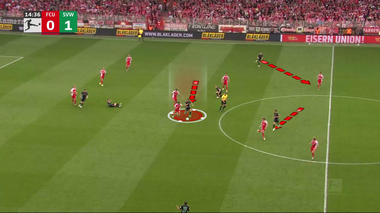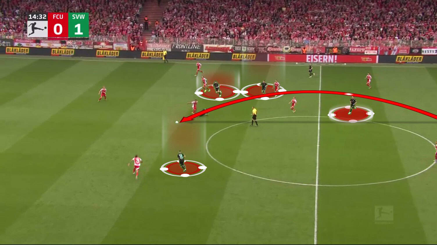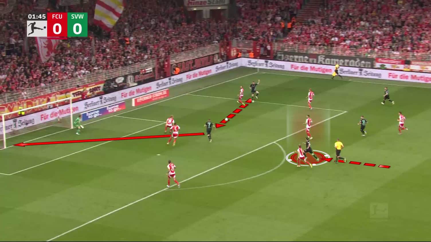Union knew the pattern and tried to prevent the pass to Schmid, but this opened up another opportunity for Werder.