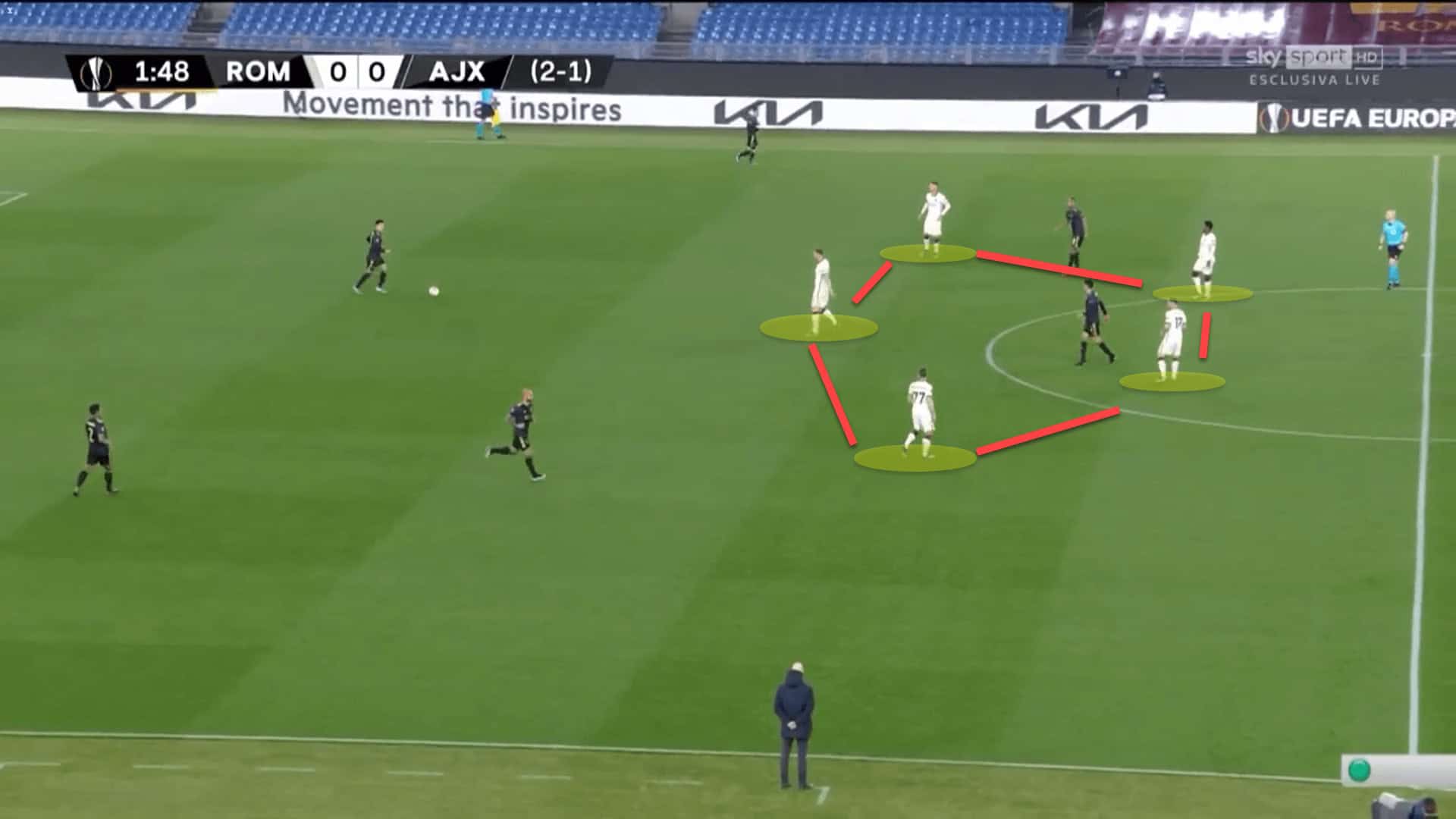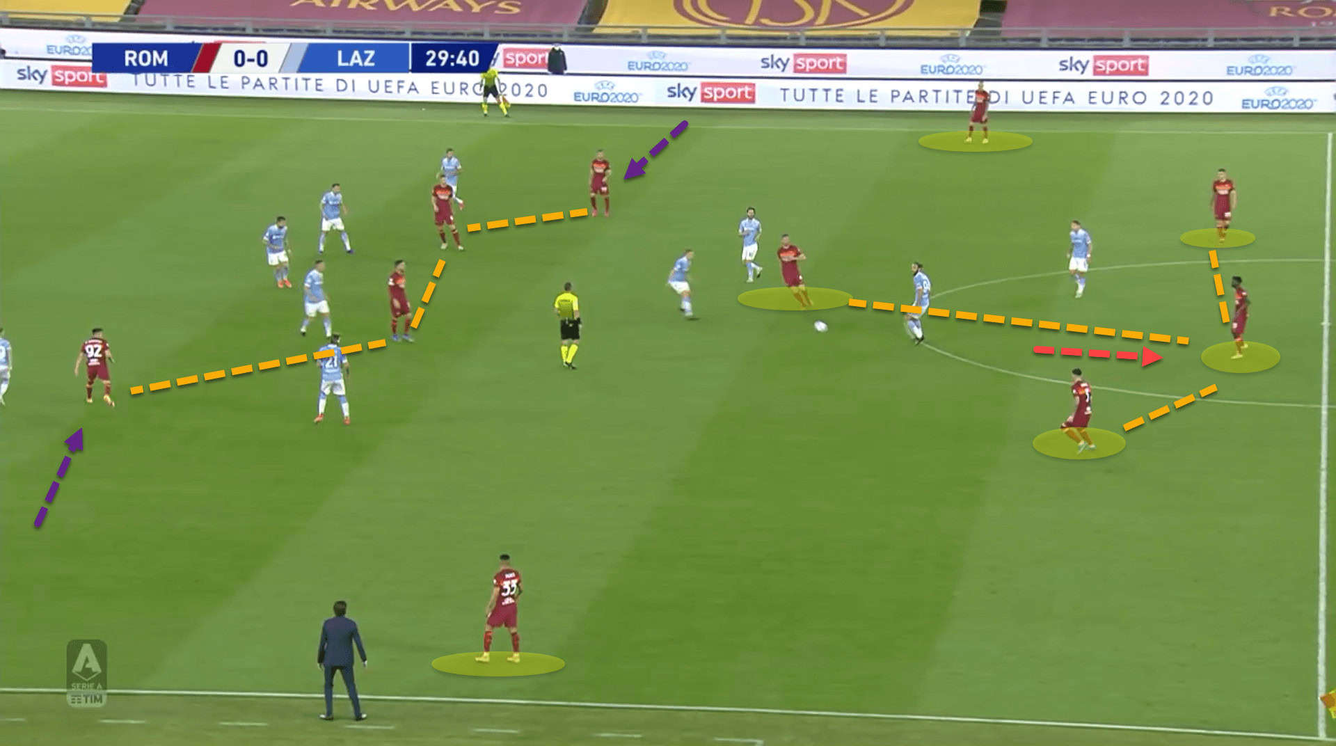 In Rome, this is one area where Roma were extremely dangerous. Having players such as Henrikh Mkhitaryan and Lorenzo Pellegrini operating in these areas of the pitch wreaked havoc on opposition defenders.