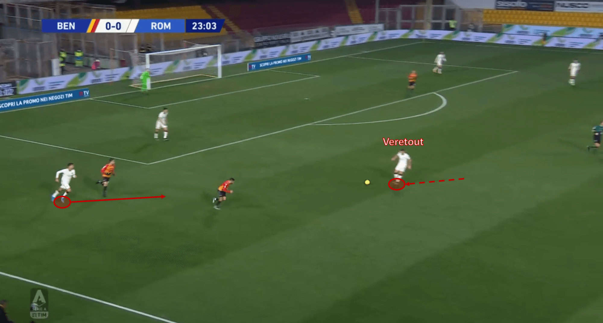 Veretout drops deep here to collect the ball and aid ball progression against Benevento.