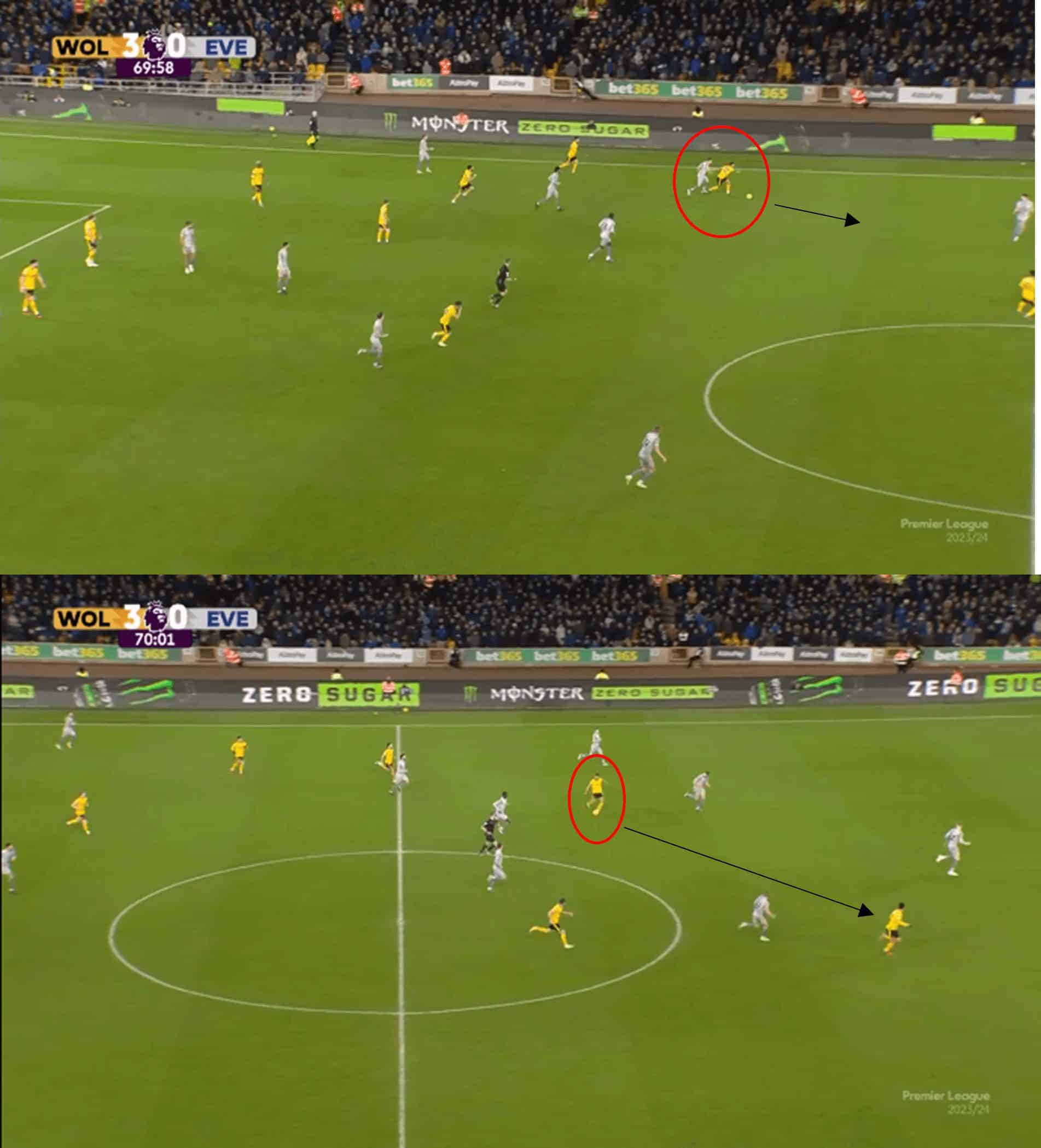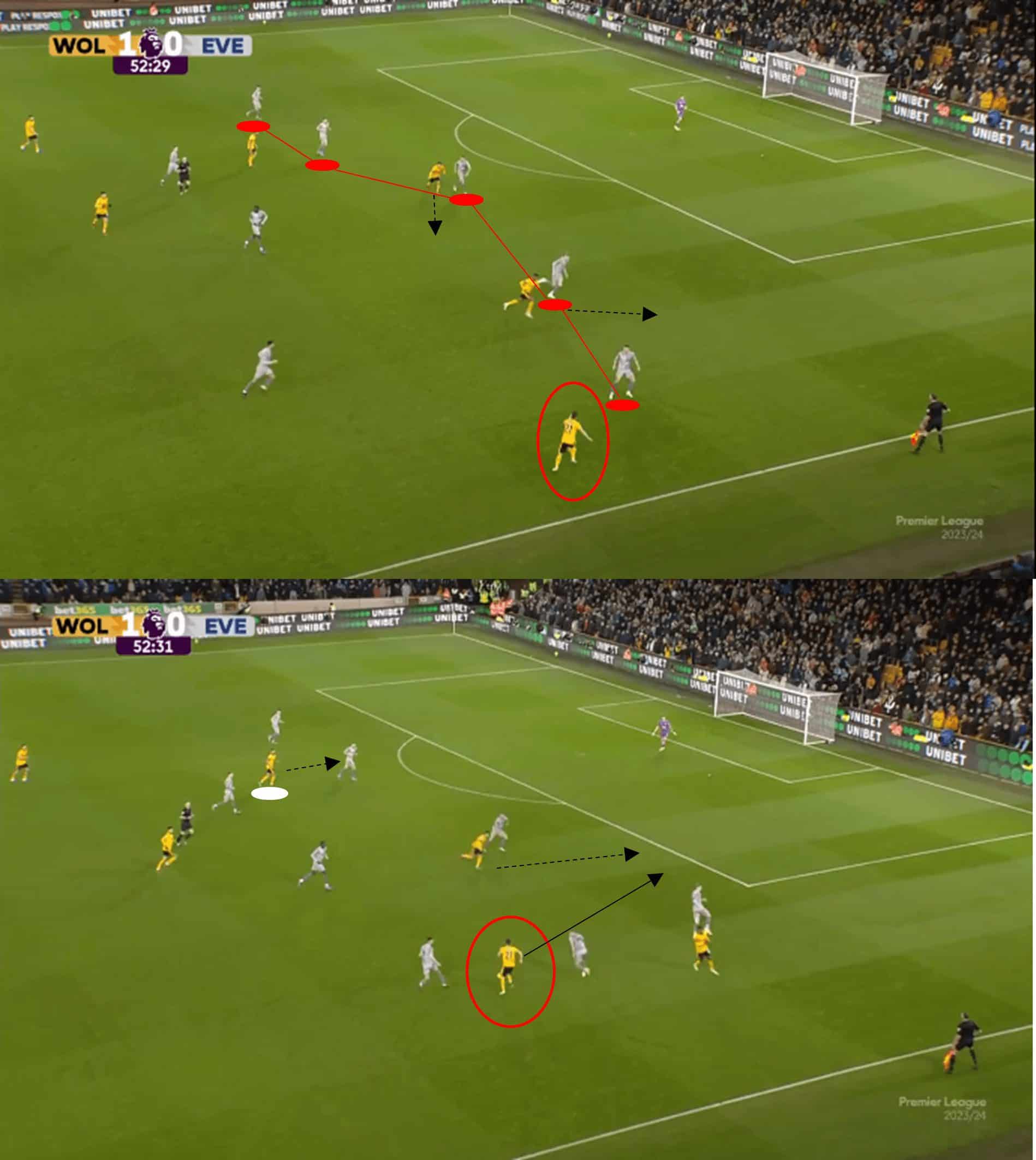 Hwang still had to show composure and skill to dispatch his effort, but nevertheless, his positioning from the initial press enabled Wolves to be a threat up front, and he doubled his side’s lead.