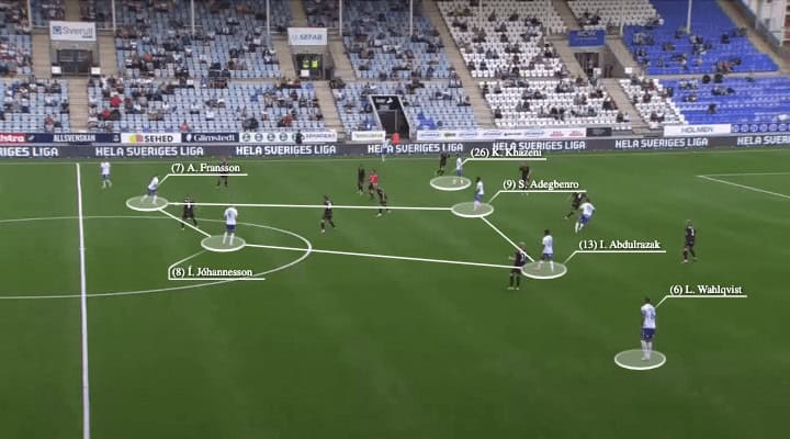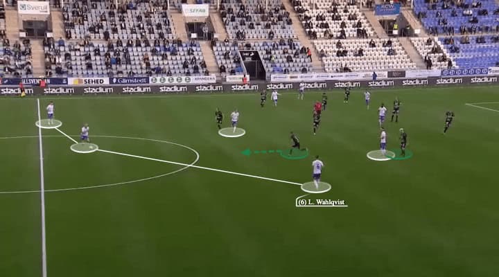 From there, they allowed Kristoffer Khazeni to drift wider, as the 26-year-old attacker was more like a flank player in terms of style. On the right side, Wahlqvist was high to provide the width.
