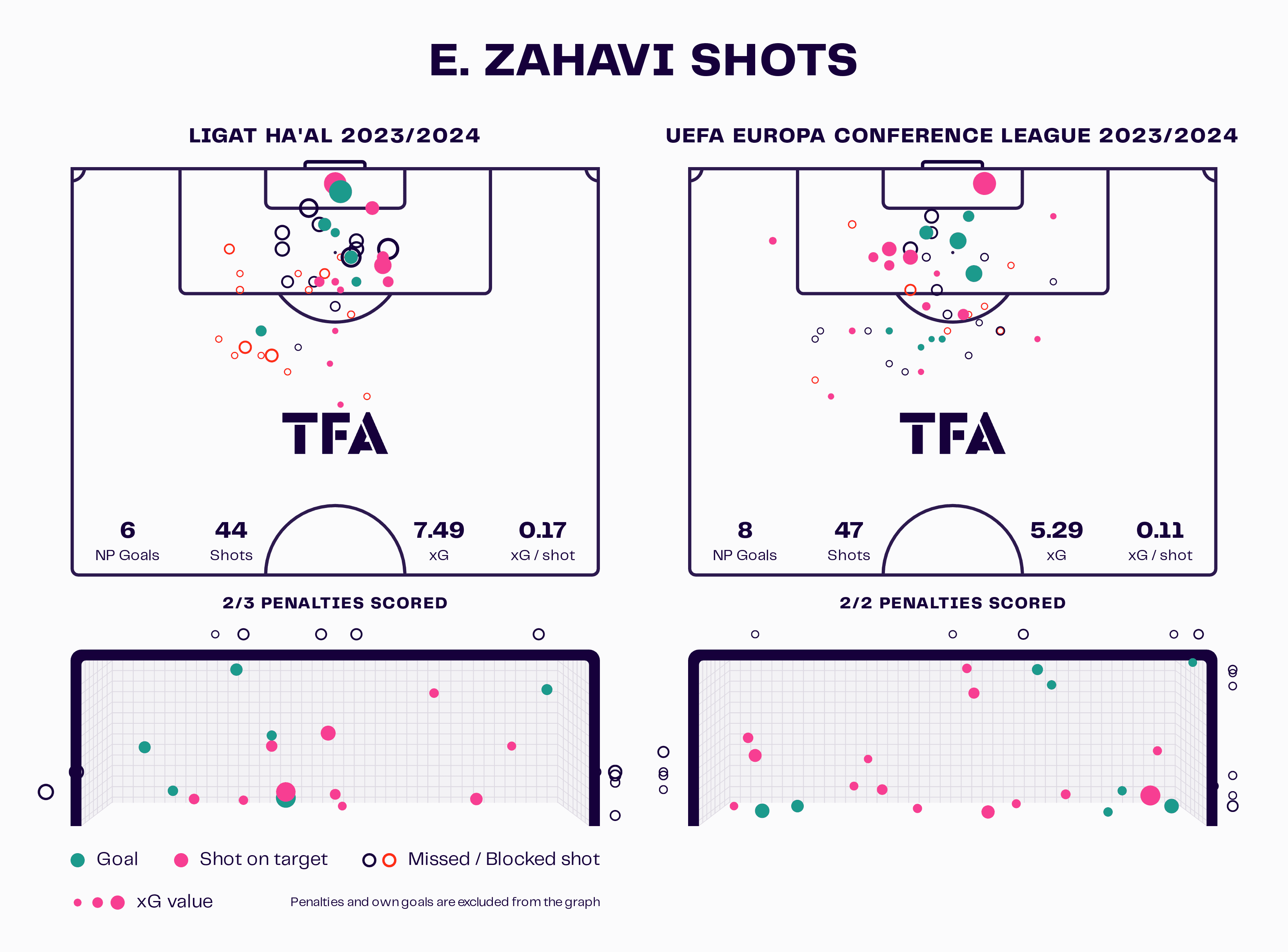 Whilst the same can be said of his performances in the Europa Conference League, he has also been scoring goals with low expected goals from outside the area in Europe.