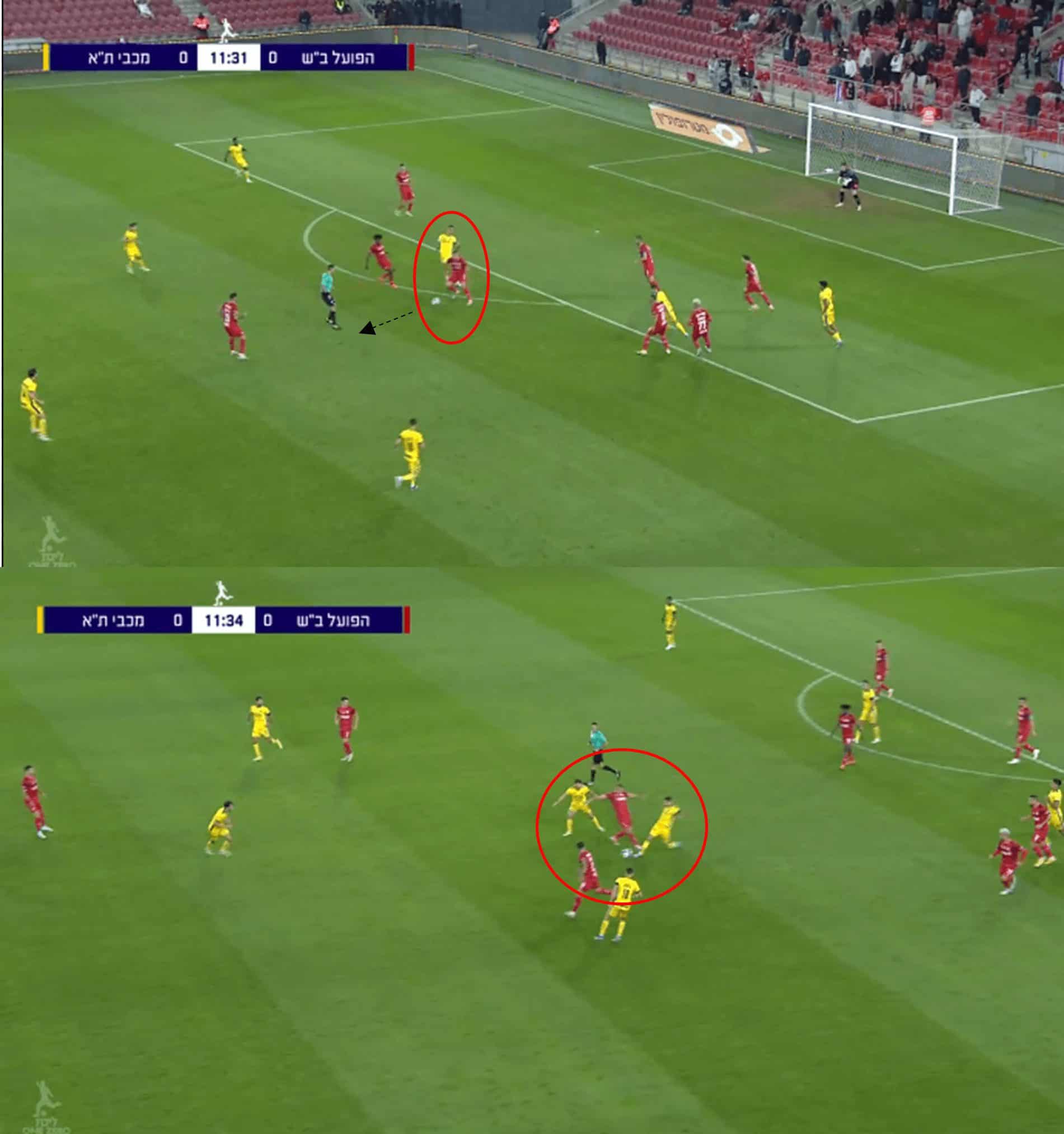 Nevertheless, when they do lose possession, Maccabi Tel Aviv are aggressive and efficient with counterpressing recoveries.