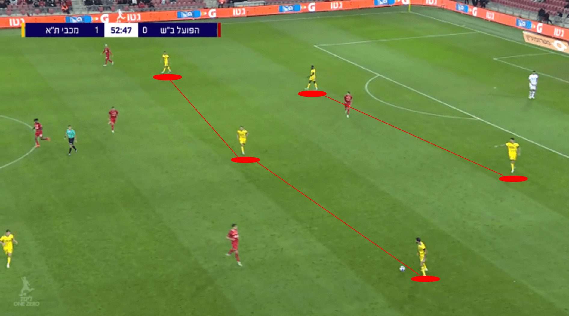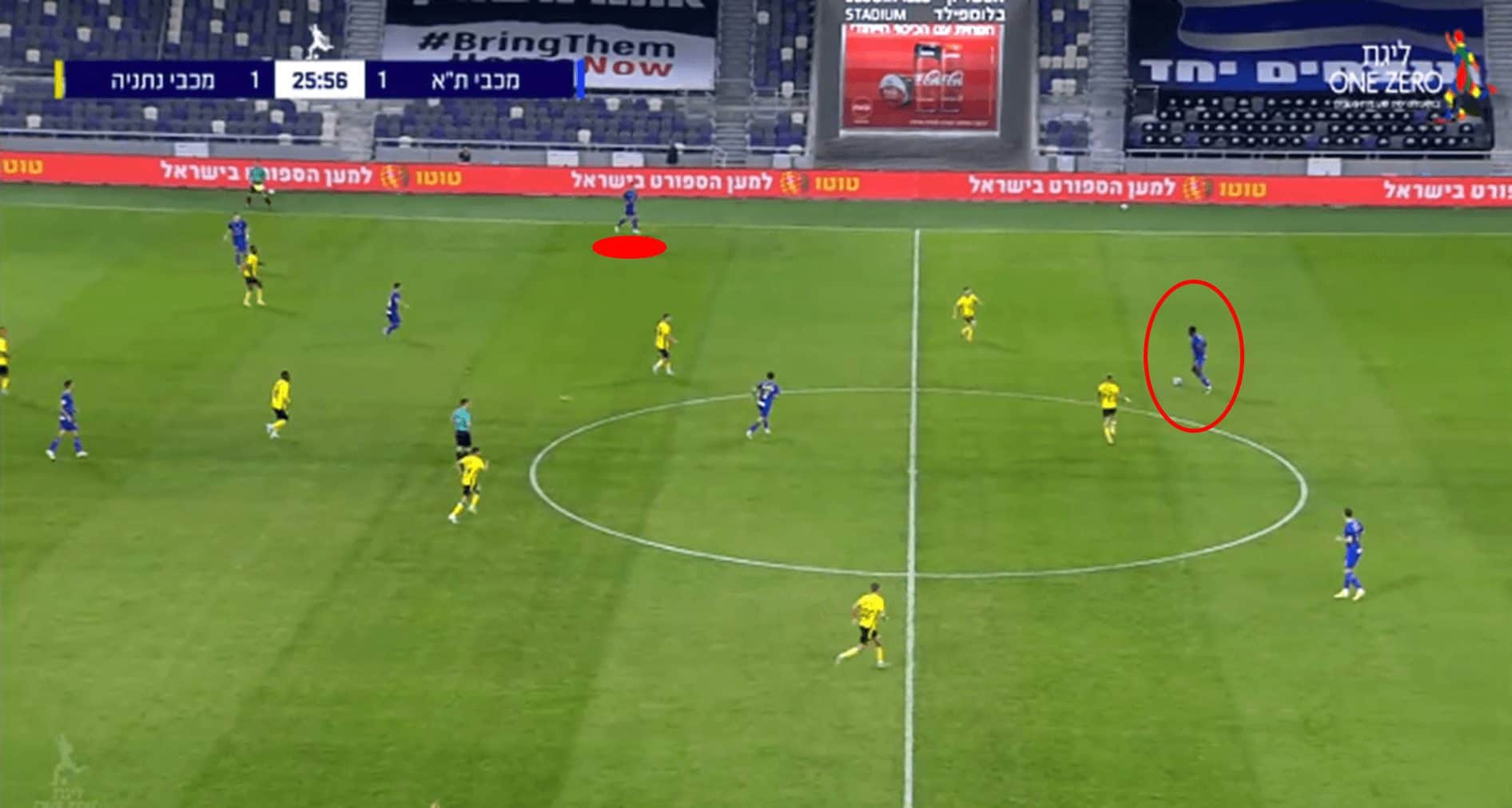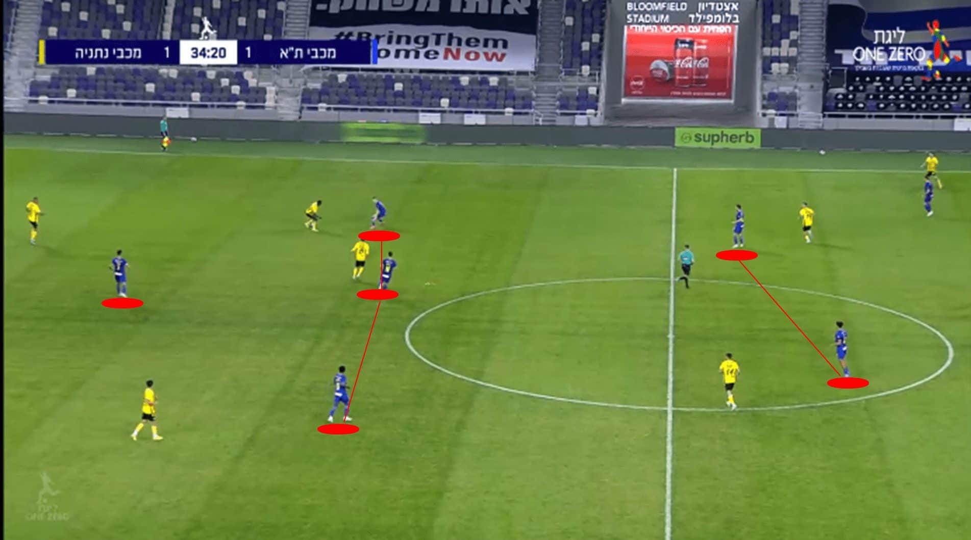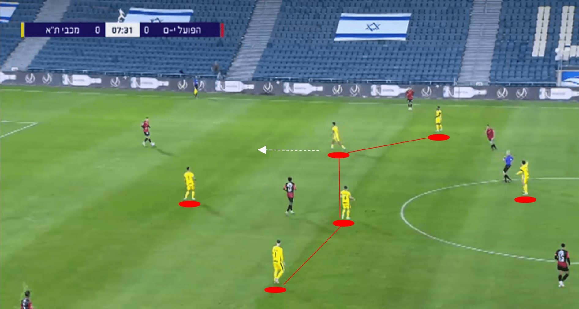The overload of players centrally also enables Maccabi Tel Aviv to dominate possession.