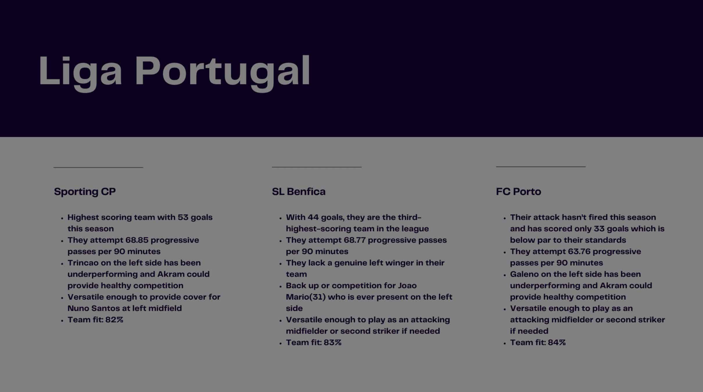 We also have two reports using our in-house xGOLD Player and xGOLD Team tools to find potential solutions based on current scenarios in the transfer market.
