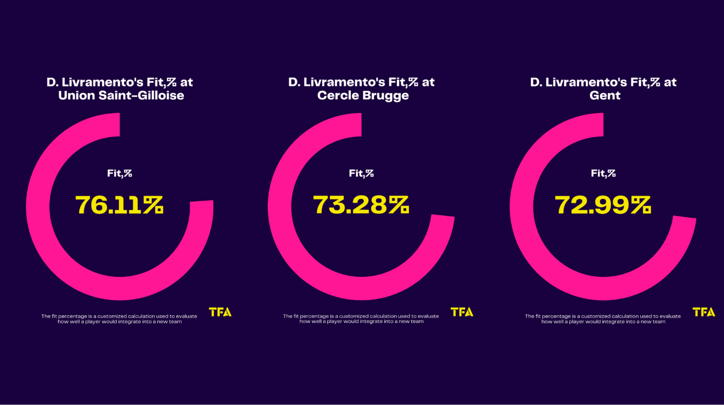 Then, using some of our custom-built in-house tools, plus industry experience and knowledge, we are able to narrow it down to which clubs we think these players would fit best in their next move – it’s cool stuff.