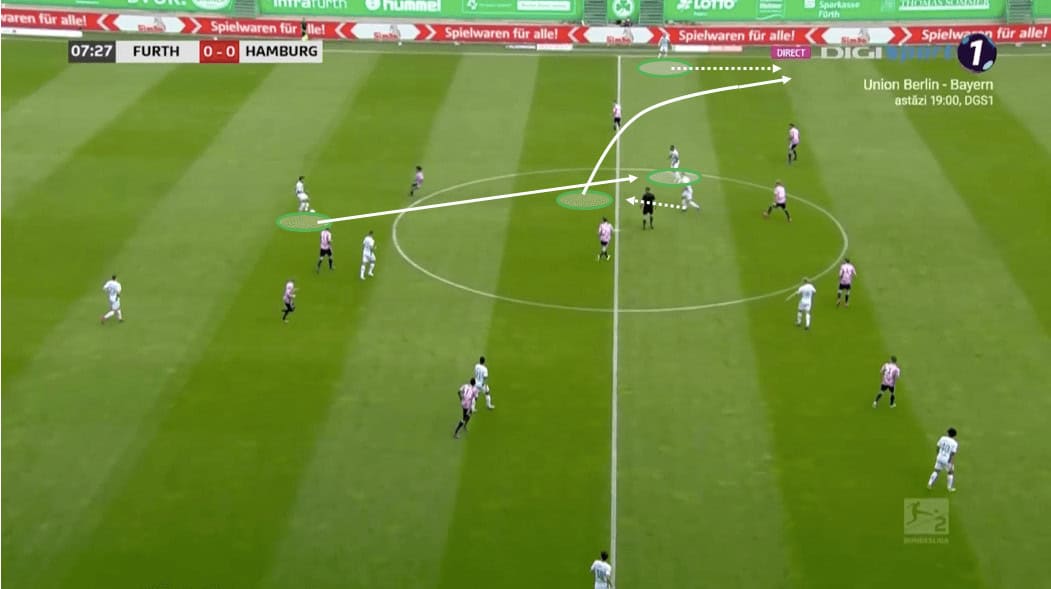 Hamburg was able to exploit faults in Fürth’s 4-3-3 formation in defence. But more importantly, when pressed into a corner, the Hamburg defence was more than up to the task.