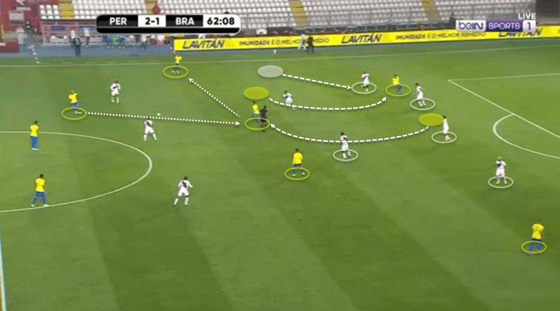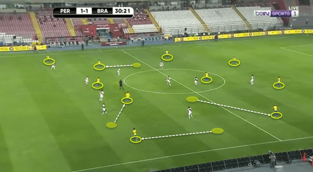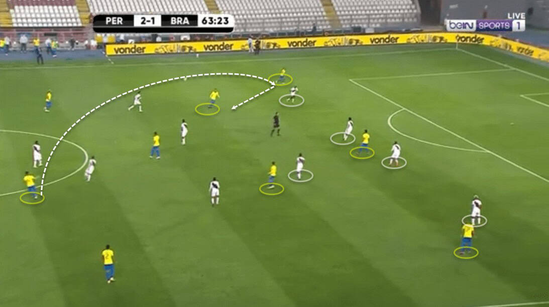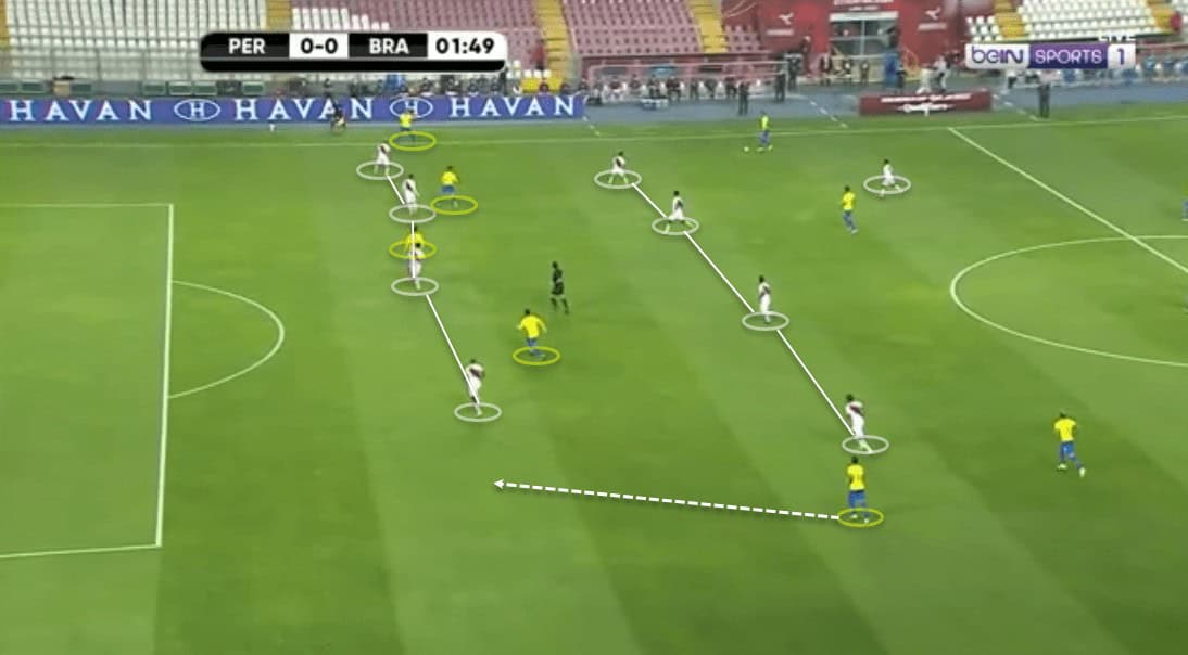 Brazil build-up helping to exploit Peru’s defensive shape