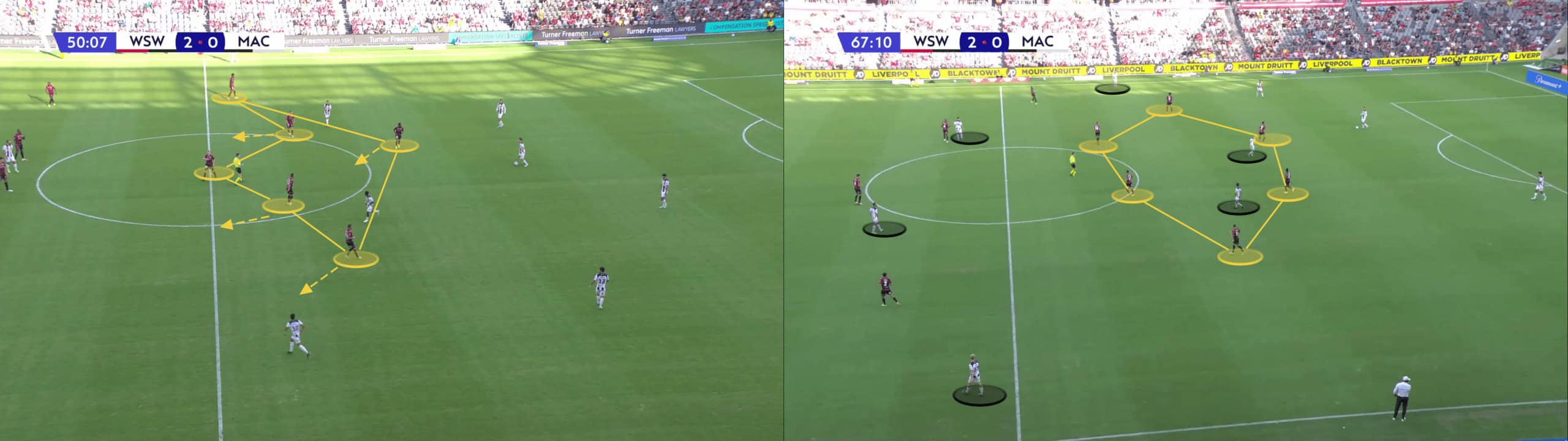 In the end, Macarthur easily won against the press, making this a very instructive game for Yorke. Nonetheless, Macarthur suffered when the Wanderers decided not to press.