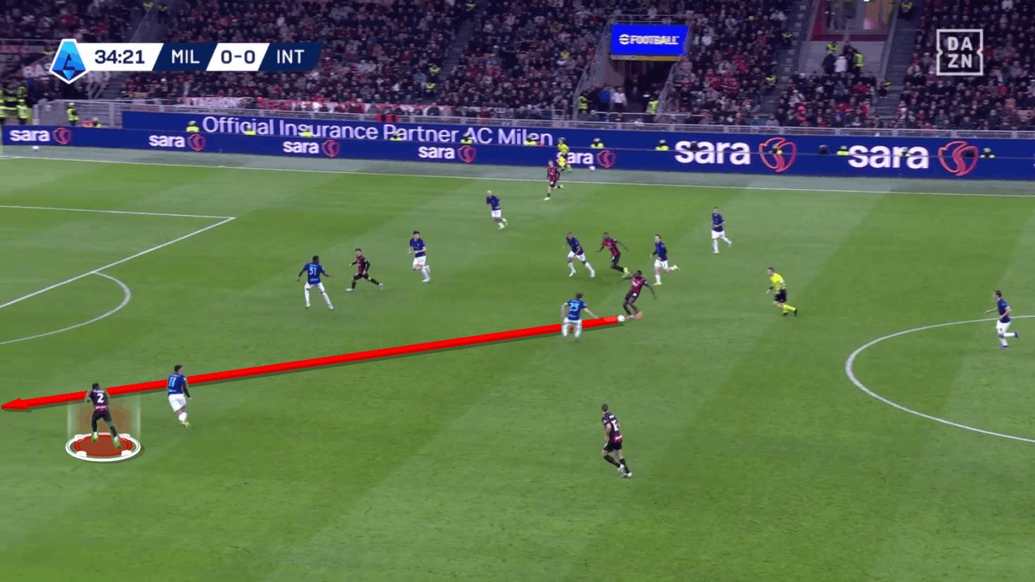 That direct pass, ignoring Di Winter and his marker, paved the way for Tomori to play vertically from the right flank to the direction of Fofana.