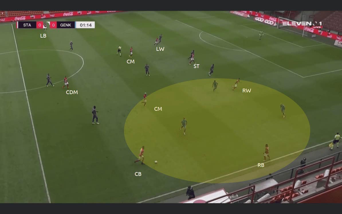 As Genk used wide dynamics to create goal-scoring opportunities, Standard were also eager to attack down the flanks and create their chances from there. Standard Liege would do it differently though.