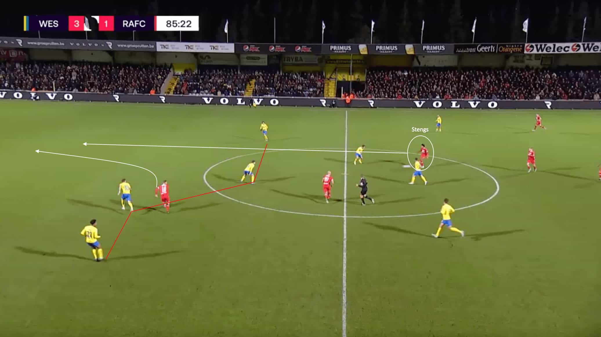 The next part of this attacking phase of play by Westerlo is shown above.