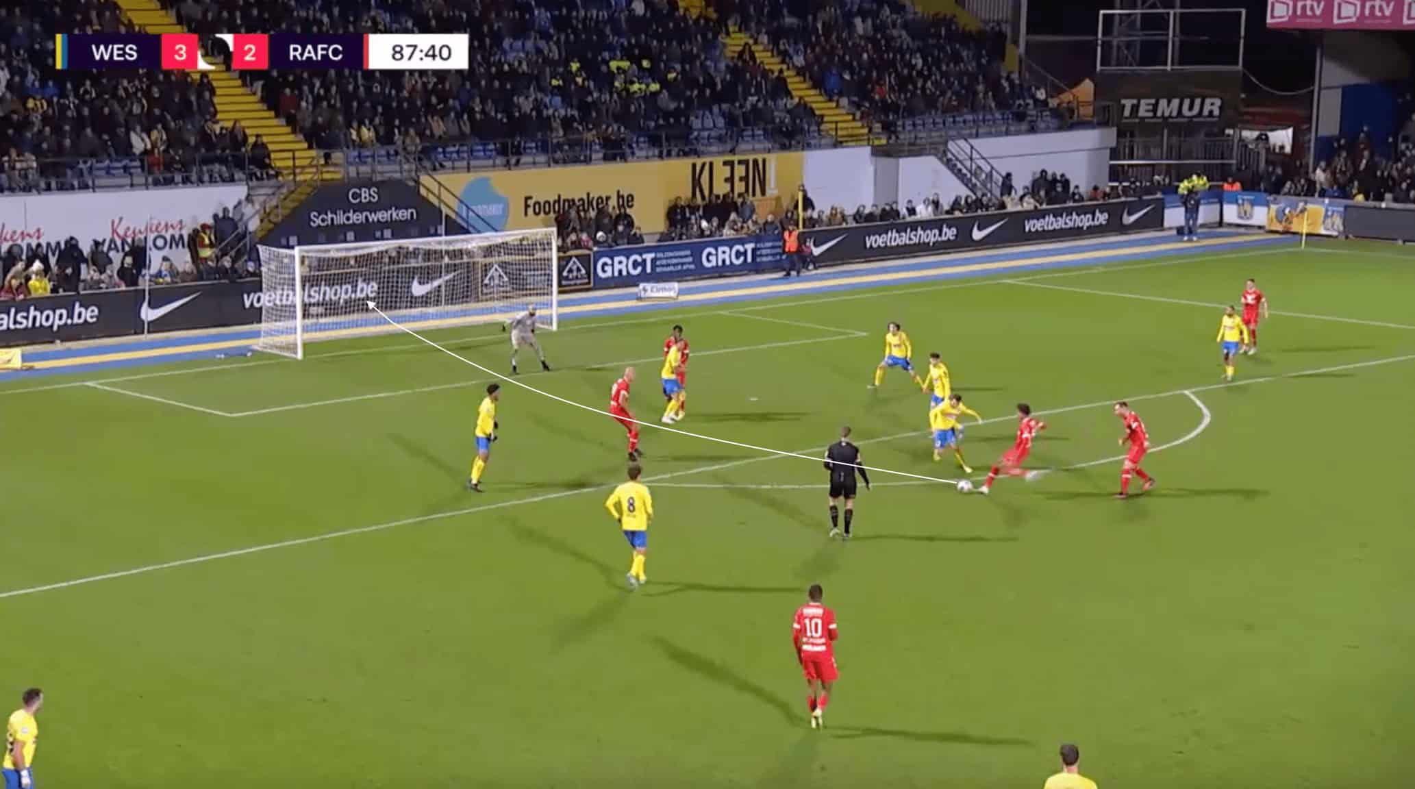 The image above shows the assist from Stengs that leads to the second goal for Antwerp.